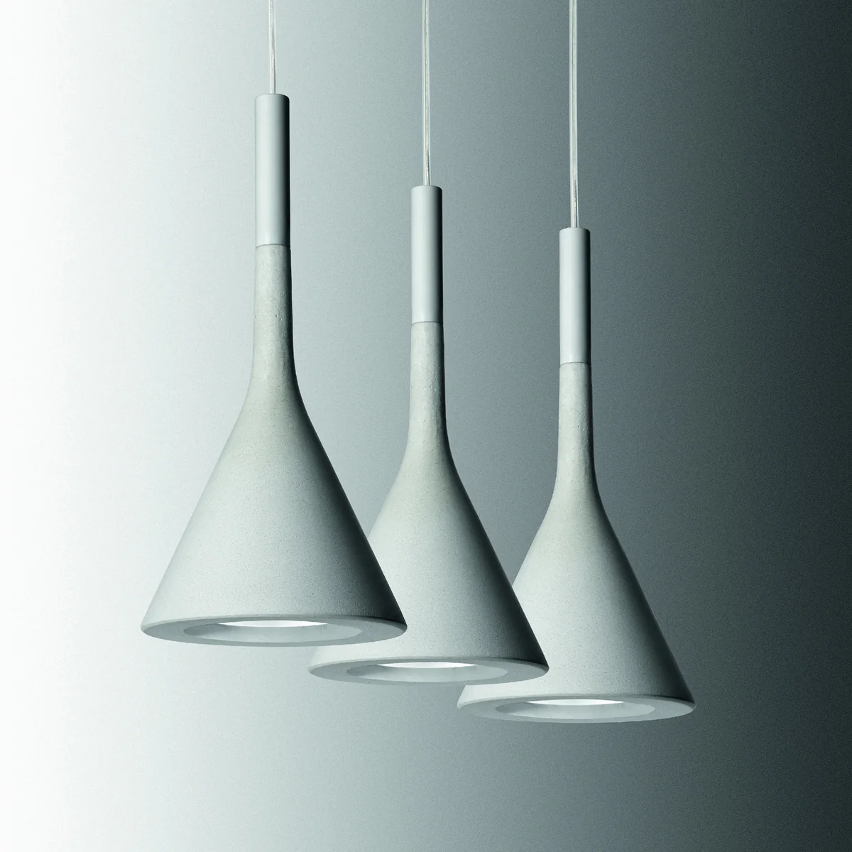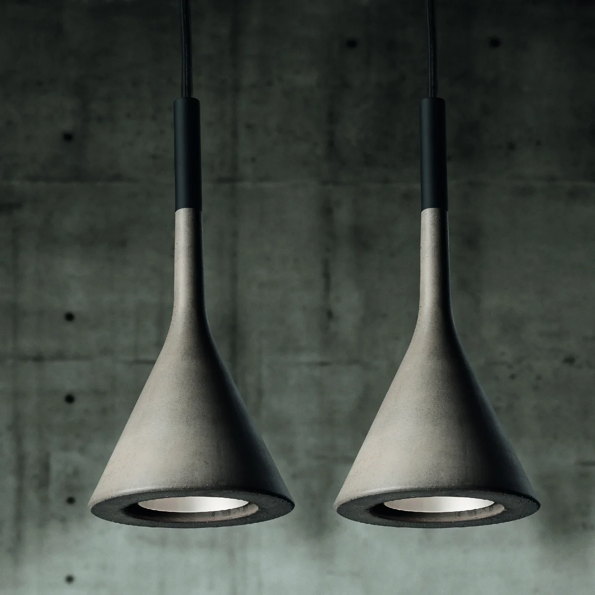 Die Pendelleuchte Aplomb von Foscarini kombiniert den Werkstoff Beton mit einem sachlichen und gleichzeitig dekorativen Design. Der Entwurf der Leuchte stammt von den Designern LucidiPevere.