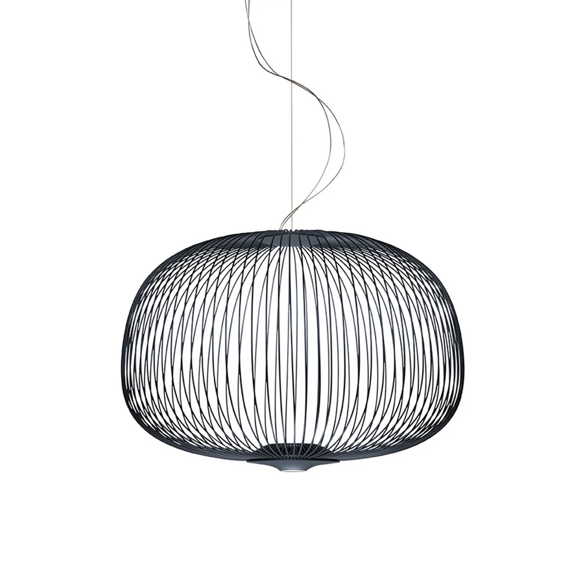 Die Spokes Pendelleuchte 3 von Foscarini zeichnet sich durch durch ihr filigranes Design aus, das an Leichtigkeit kaum zu übertreffen ist. Wie die Speichen eines Rads formen sich die einzelnen Drähte um den Mittelpunkt der Leuchte. Im angeschalteten Zustand entsteht ein Spiel aus Licht und Schatten an der Wand, das Gemütlichkeit und Charme in den Raum bringt. Entworfen wurde die Spokes Pendelleuchte von spanisch-italienischen Duo Garcia Cumini im Jahr 2014.