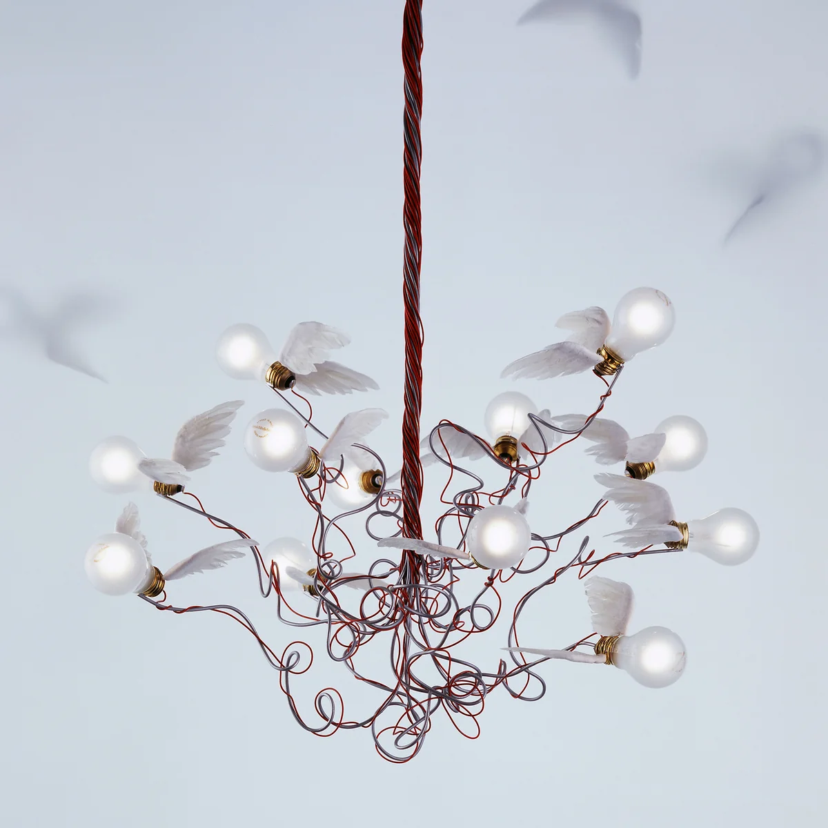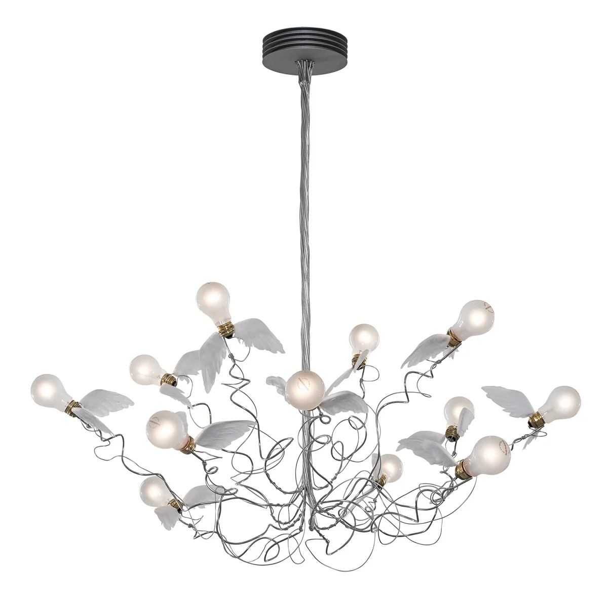 Pendelleuchte aus 12 geflügelten Glühbirnen