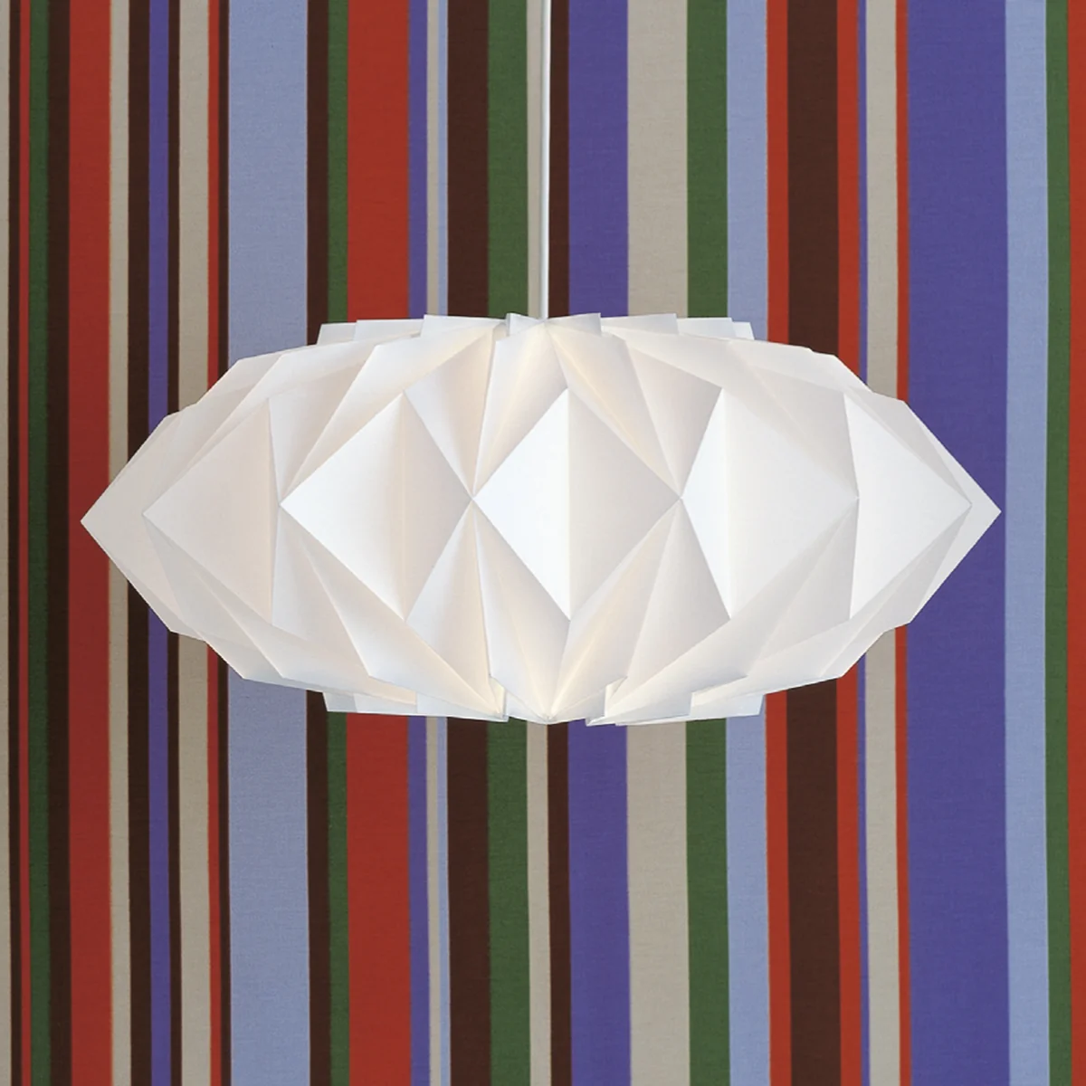 Die Lampenschirme der Pendelleuchte 161 werden noch heute in Dänemark von Hand gefaltet. Der Herstellungsprozess verbindet traditionsreiches Handwerk mit modernem Design.