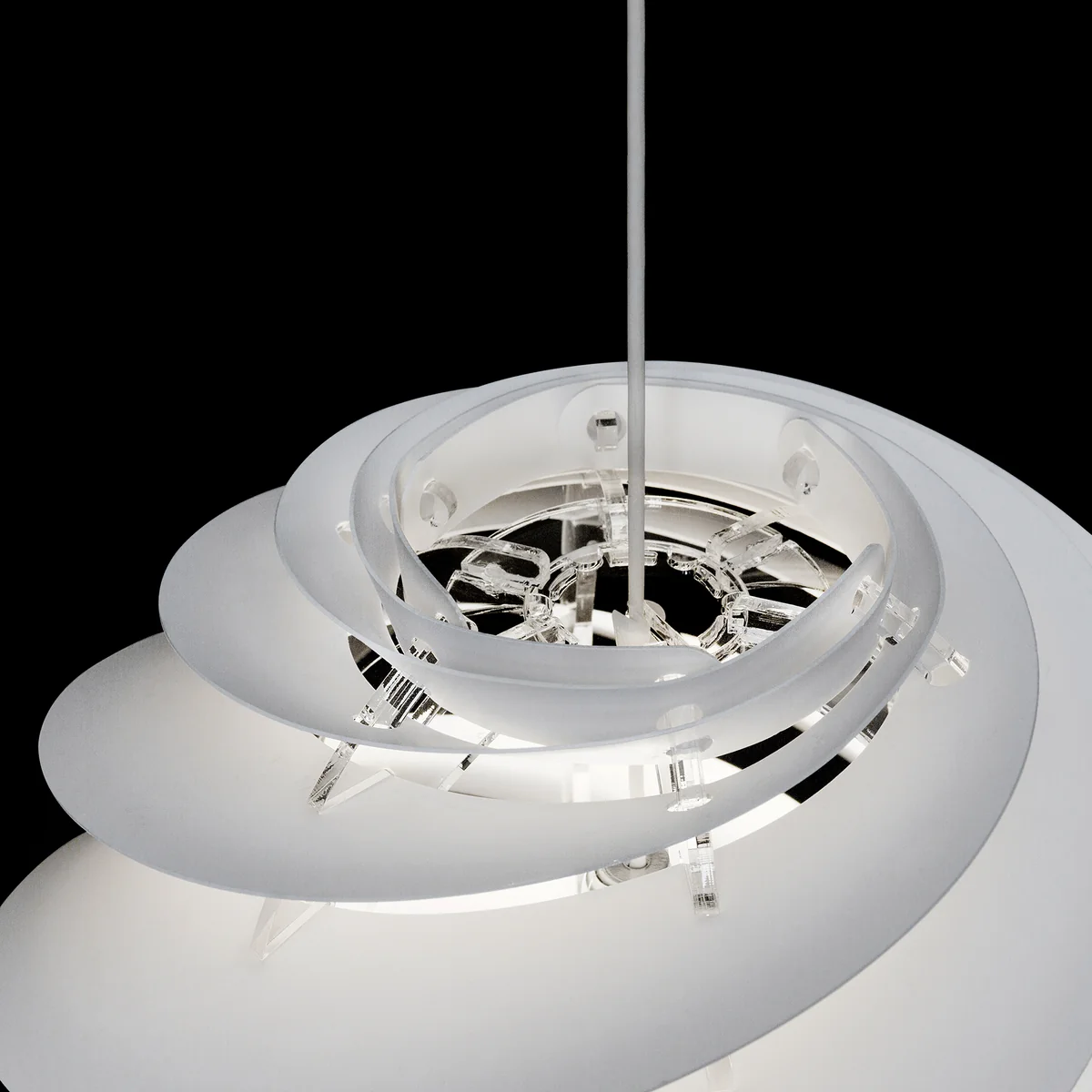 Das Design für die Swirl Pendelleuchten-Kollektion von Le Klint stammt von dem dänischen Designer Øivind Alexander Slaatto. Swirl wurde mit der Absicht entworfen unangenehmes Blenden der Lichtquelle zu verhindern und eine warme, gleichmäßige Lichtverteilung zu erzeugen.