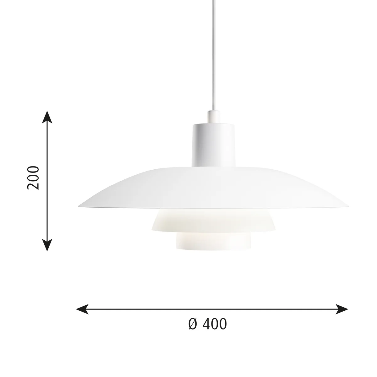 Bereits in den Jahren 1925/26 entwarf Poul Henningsen den 3-teiligen Leuchtenschirm. Das Modell PH 4/3 Pendelleuchte kam 1966 auf den Markt. Es entstand nach den gleichen Prinzipien wie die übrigen Leuchten mit 3-teiligen Schirmen, nämlich ausgehend von der logarithmischen Spirale, in deren Zentrum sich das Leuchtmittel befindet. Um ein diffuses Licht zu erzielen, wurden die Innenseiten der Schirmsegmente weiß lackiert.