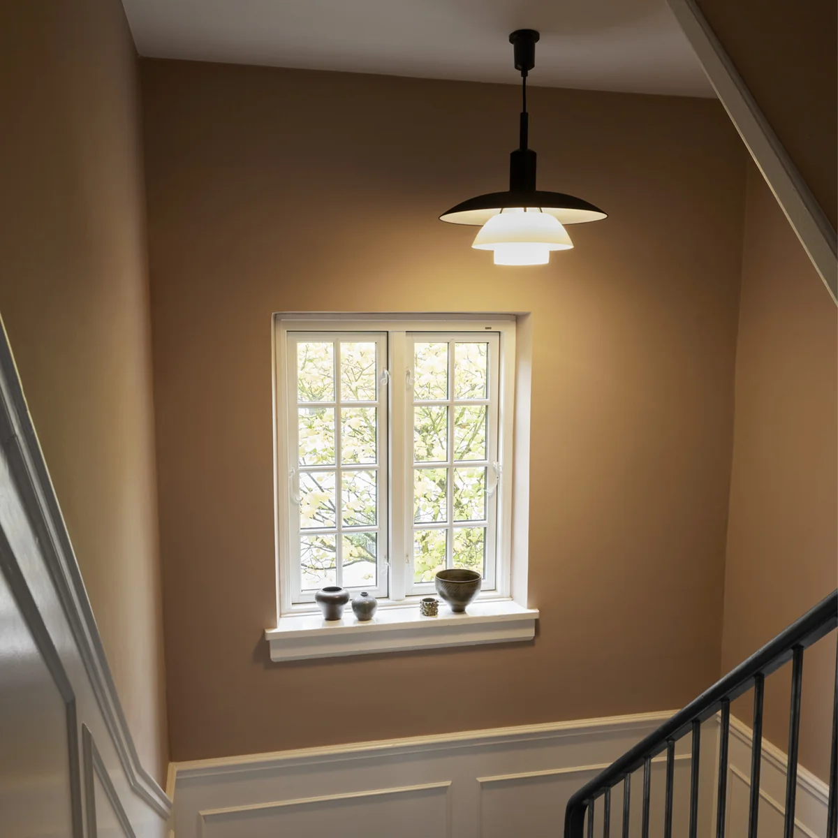Die PH 5/5 Pendelleuchte von Louis Poulsen bietet 100% blendfreies Licht. Das Design der Pendelleuchte basiert auf den Prinzip eines reflektierenden Dreischirmsystems, welches einen großen Teil des Lichts nach unten lenkt. Die PH 5/5 Leuchte strahlt sowohl nach unten als auch seitlich Licht ab und beleuchtet sich selbst.