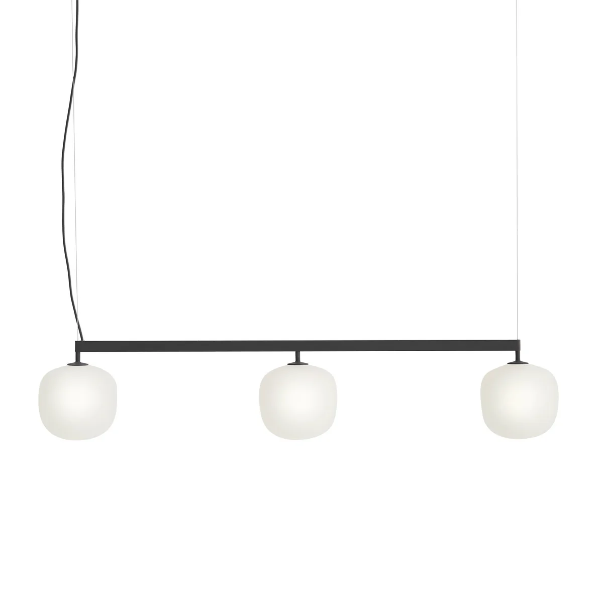 Die Rime Rail Pendelleuchte des schwedischen Designstudios TAF Studio erweitert die bestehende Rime Leuchten-Serieum eine lineare Variante. Drei mundgeblasene Glaslampen sind über eine pulverbeschichtete Schiene miteinander verbunden und erzeugen ein gleichmäßiges, sanft diffuses Licht. Die Leuchte vereint funktionale Beleuchtung mit einer ruhigen, ausgewogenen Ästhetik und eignet sich ideal für den Einsatz über Esstischen, Kücheninseln oder Konferenztischen.