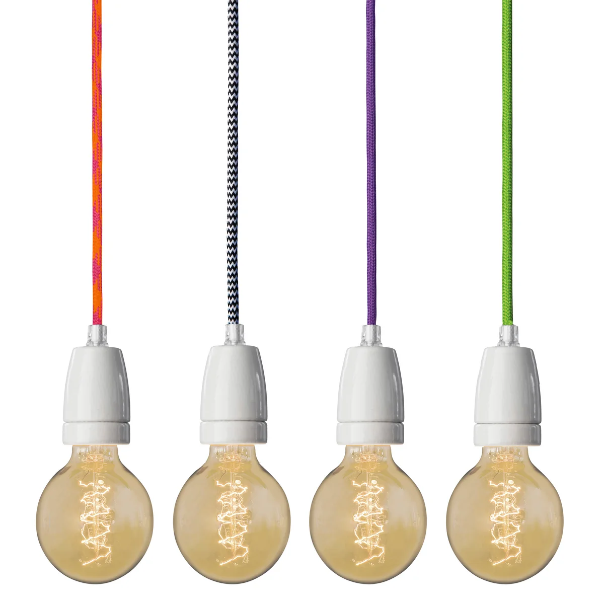 Die Classic White Collection von NUD ist mit der hochwertigen Porzellanfassung für E27 Leuchtmittel bis maximal 60 Watt geeignet. Dank des reduzierten Designs steht das Licht bzw. das Leuchtmittel im Fokus - wählen Sie ein außergewöhnliches Leuchtmittel Ihrer Wahl und konfigurieren so Ihre eine ganz persönliche Lichtkomposition.