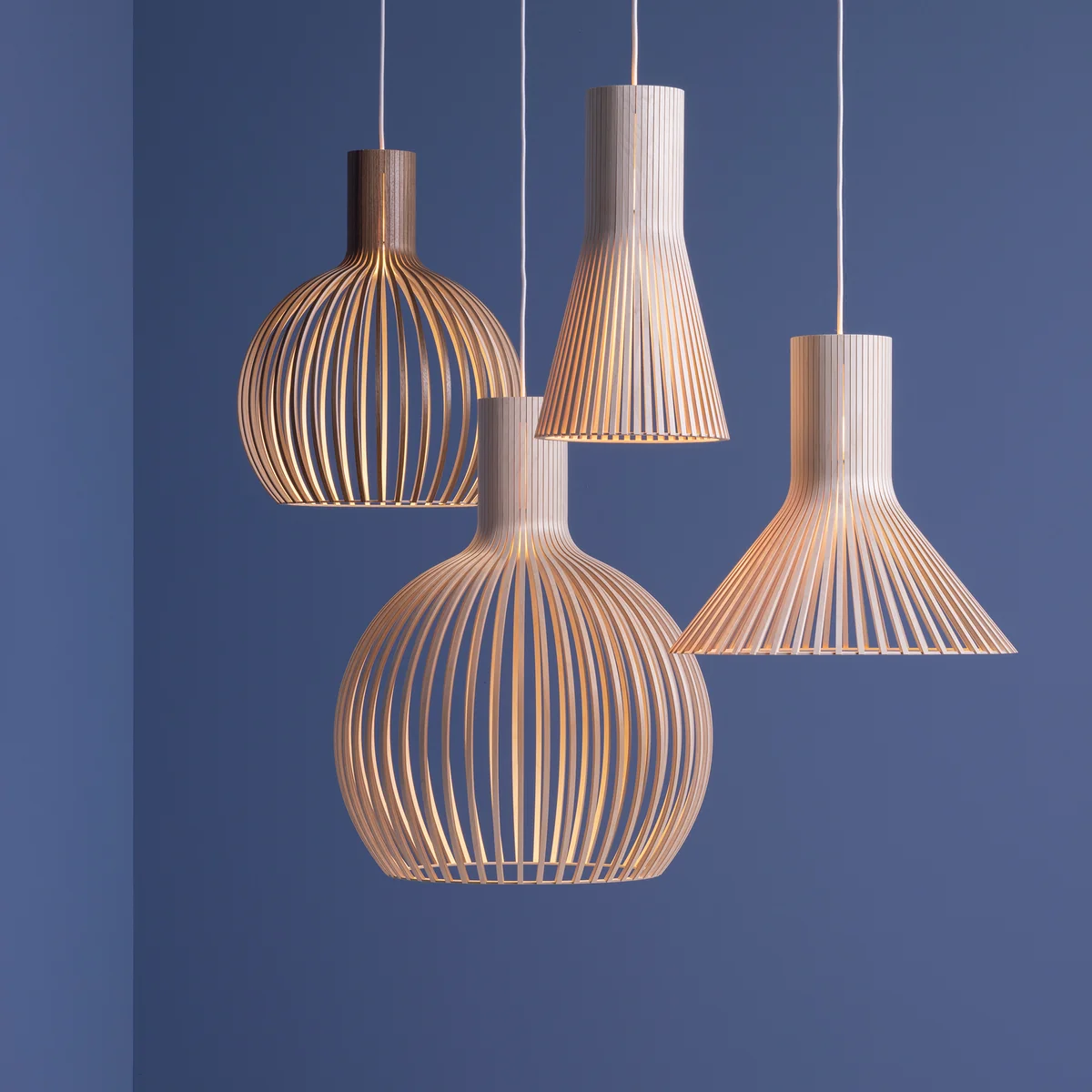 Die Leuchte wird in Handarbeit aus PEFC-zertifizierter formgepresster Birke in verschiedenen Lackierungen oder mit Walnussfurnier in Finnland von erfahrenen Handwerkern hergestellt. Sie überzeugt durch ihre bauchige Form und durch die gebogenen Holzlamellen. Die Holzlamellen lassen das Licht auf schöne Weise hindurch scheinen, wodurch eine angenehme Atmosphäre in jedem Raum entsteht.