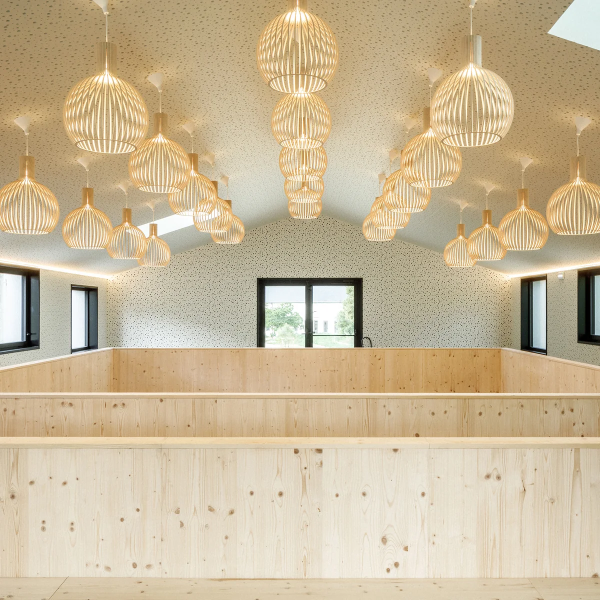 Holzlamellen sorgen für angenehme Lichtverteilung