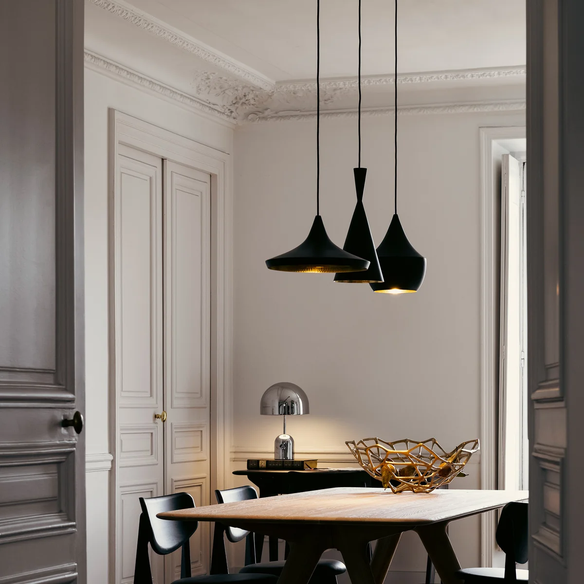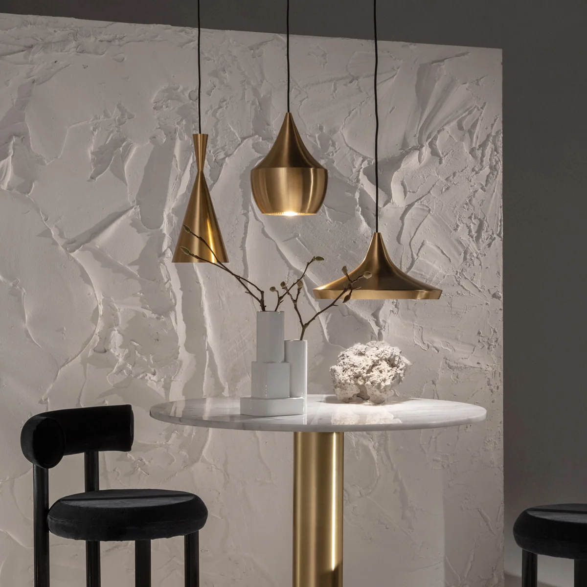Die Beat Leuchten von Tom Dixon können sowohl einzeln aufgehängt werden wie auch gesammelt, dabei entfaltet sich ihr ausgefallenes Design am besten im Cluster.