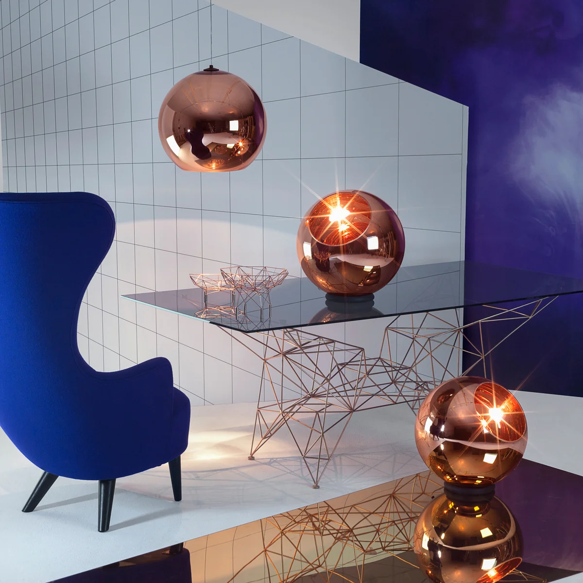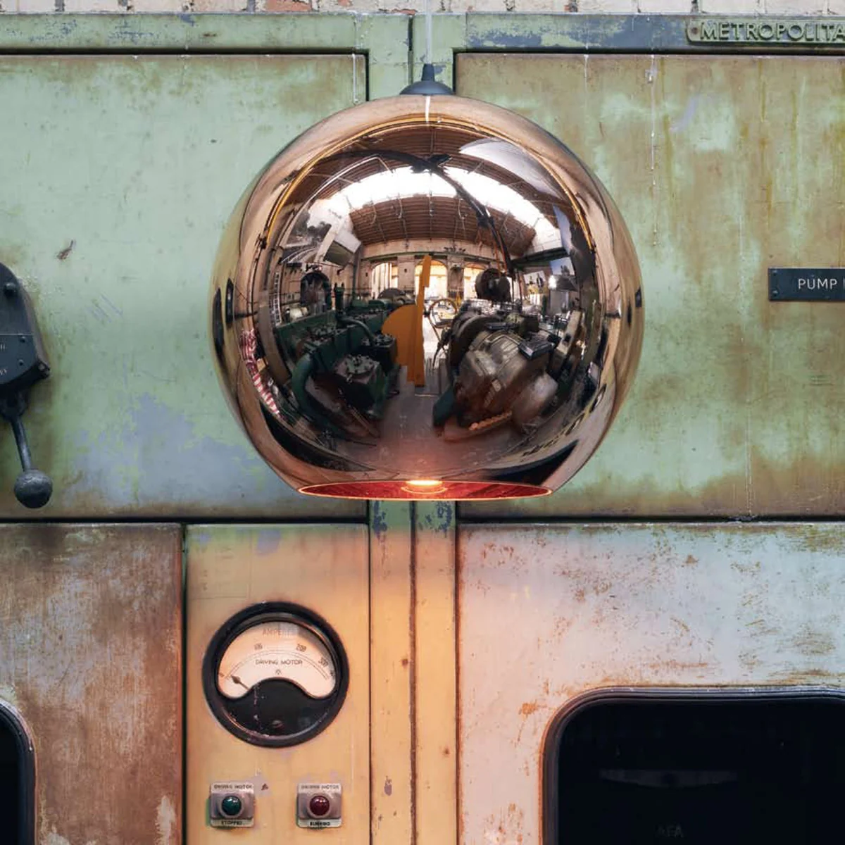 Auf Hochglanz poliert, erscheint die Copper Pendelleuchte in voller Pracht. In ihrem Äußeren spiegelt sich die gesamte Umgebung. Zusammen mit weiteren Copper Leuchten erzeugt sie deshalb ein faszinierendes Ensemble aus Lichtquellen sowie Spiegelungen und ist mit Sicherheit ein optisches Highlight in jeder Umgebung.