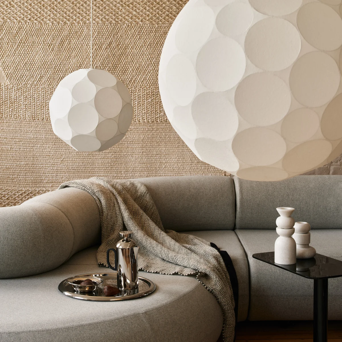 Die Soft Pendelleuchte zeigt die zurückhaltende, poetische Seite von Tom Dixon. Mit ihrer sanft abgerundeten Form erinnert sie an eine entstehende Himmelskugel und verströmt ein warmes, diffuses Licht. Der geschweißte Stahlrahmen ist in eine feine, lichtstreuende Hülle eingesponnen – ein Design, das Ruhe, Leichtigkeit und Eleganz ausstrahlt. Durch den Einsatz einer Smart-Glühbirne lässt sich die Lichtfarbe und Helligkeit individuell anpassen und so die Stimmung des Raumes verändern.