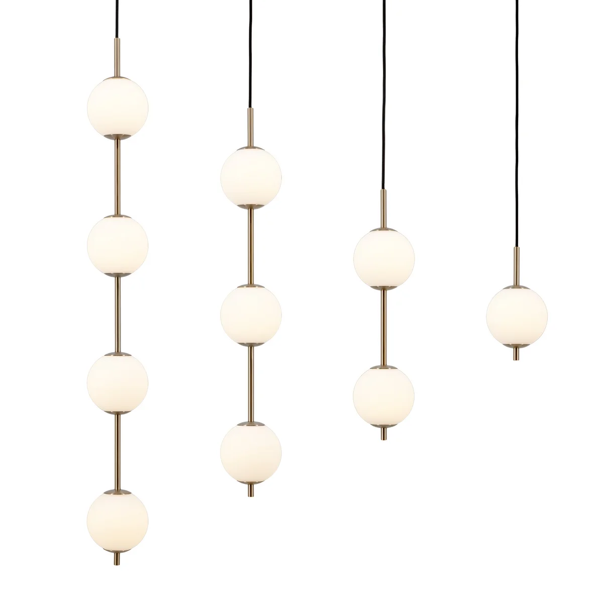 Die Kollektion zeichnet sich durch ihre atemberaubenden Messingakzente und mundgeblasenen Opalglaskugeln aus, die an leuchtende Perlen erinnern. Diese zarten Kugeln verbreiten sanft das Licht und schaffen eine beruhigende Atmosphäre, die zu Entspannung und Ruhe einlädt.