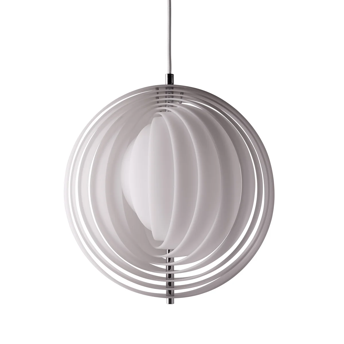 Die Moon Opal Pendelleuchte von Verpan ist ein zeitloses Designstück, das Eleganz und Funktionalität vereint. Die harmonische, runde Form erinnert an den Mond, während die opalweiße Oberfläche ein sanftes, diffuses Licht abgibt und für eine warme und einladende Atmosphäre sorgt. Die Lamellen der Leuchte sind so angeordnet, dass sie das Licht weich streuen und gleichzeitig interessante Schatteneffekte erzeugen. Die Moon Opal Pendelleuchte ist vielseitig einsetzbar und ein echtes Highlight in jedem Raum.
