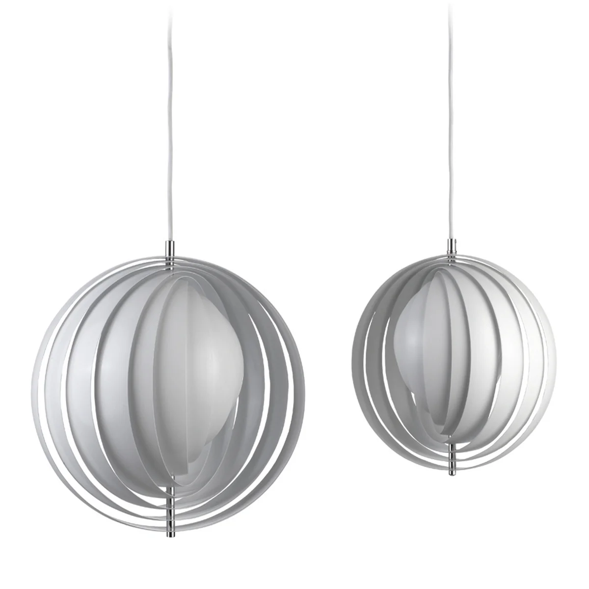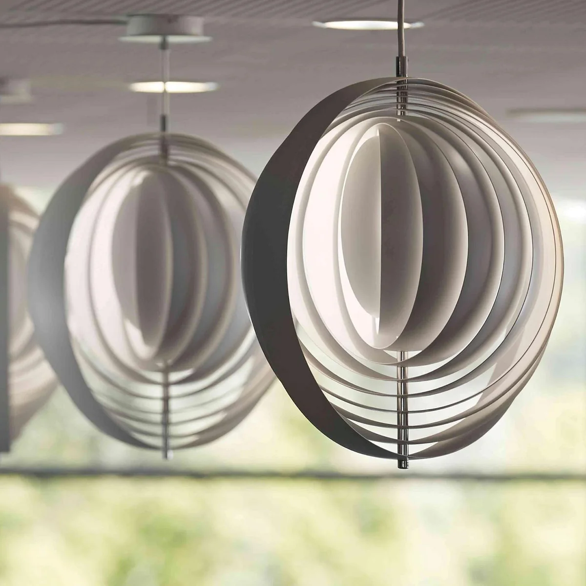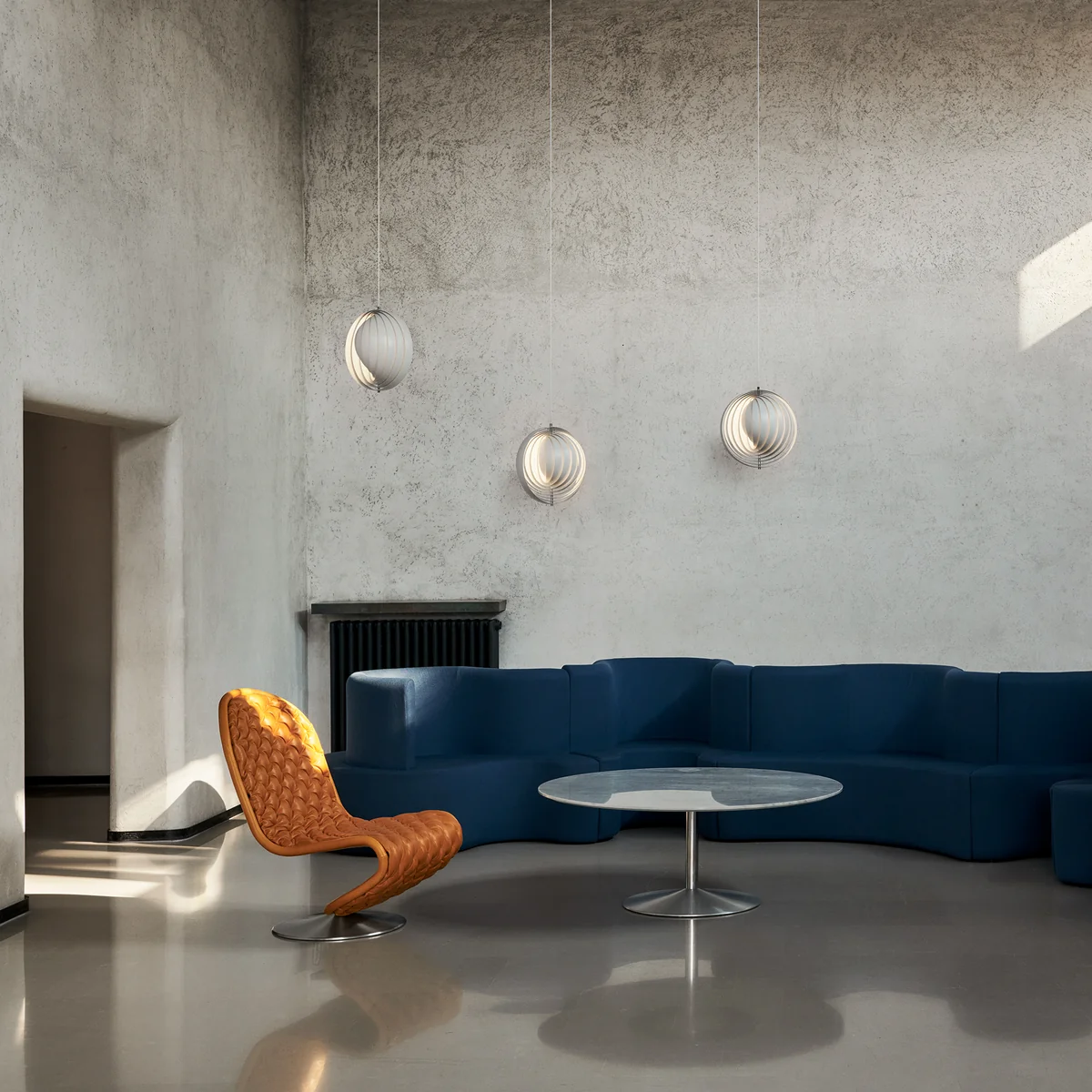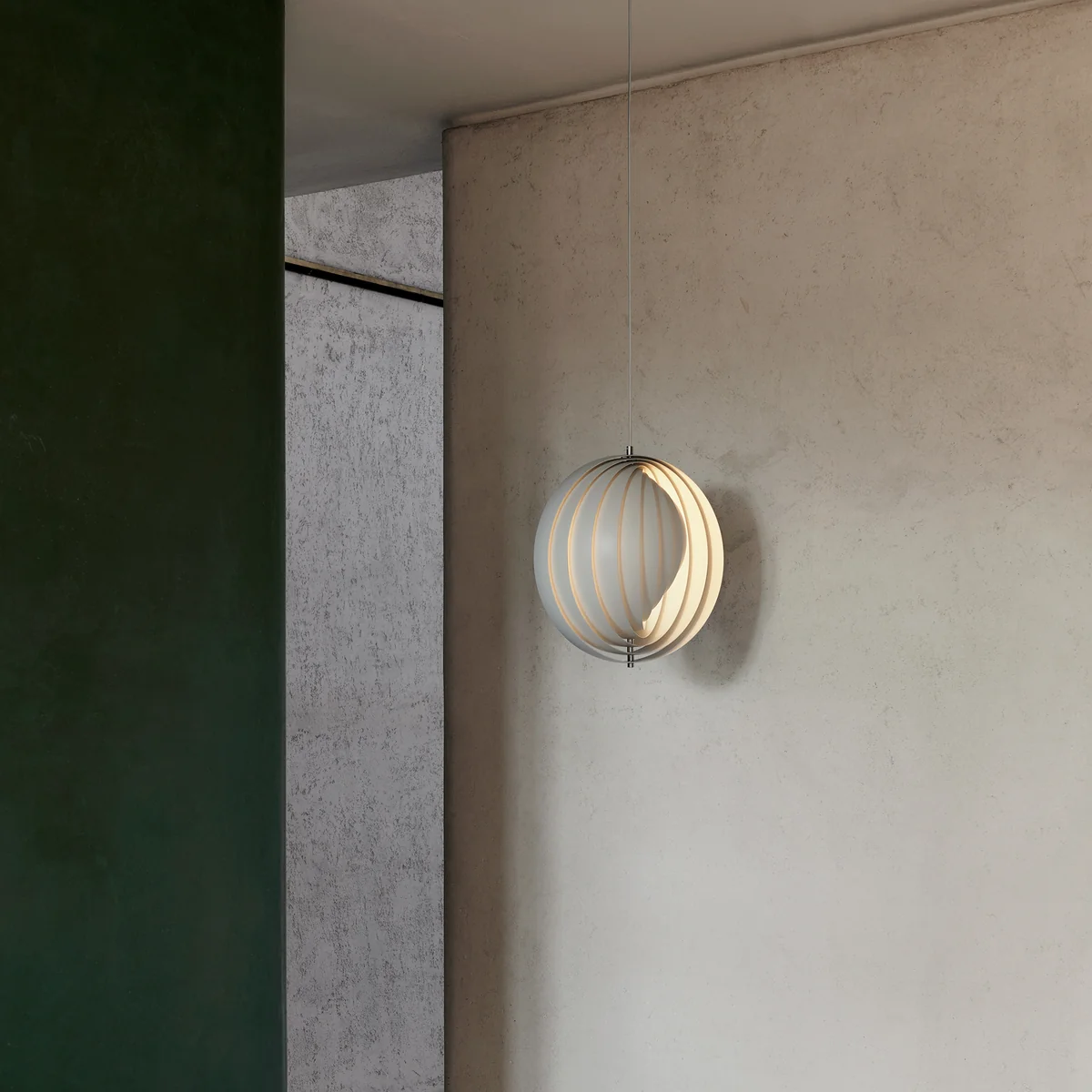 Zeitlos und schön wie der gleichnamige Himmelskörper: Bereits 1960 gestaltete Verner Panton in Zusammenarbeit mit Louis Poulsen die Moon Pendelleuchte, die wie der Mond in der Form zu- und abnehmen kann.