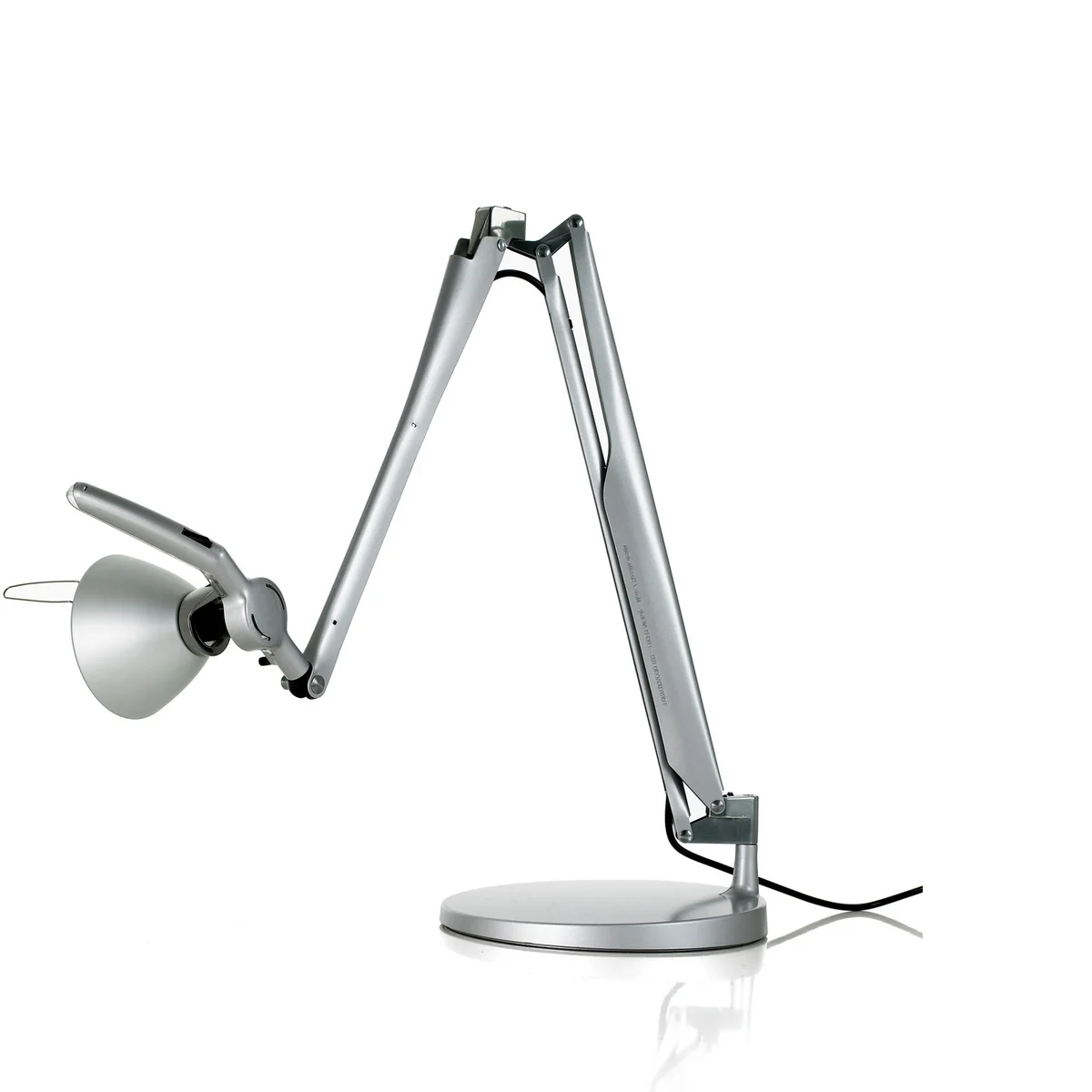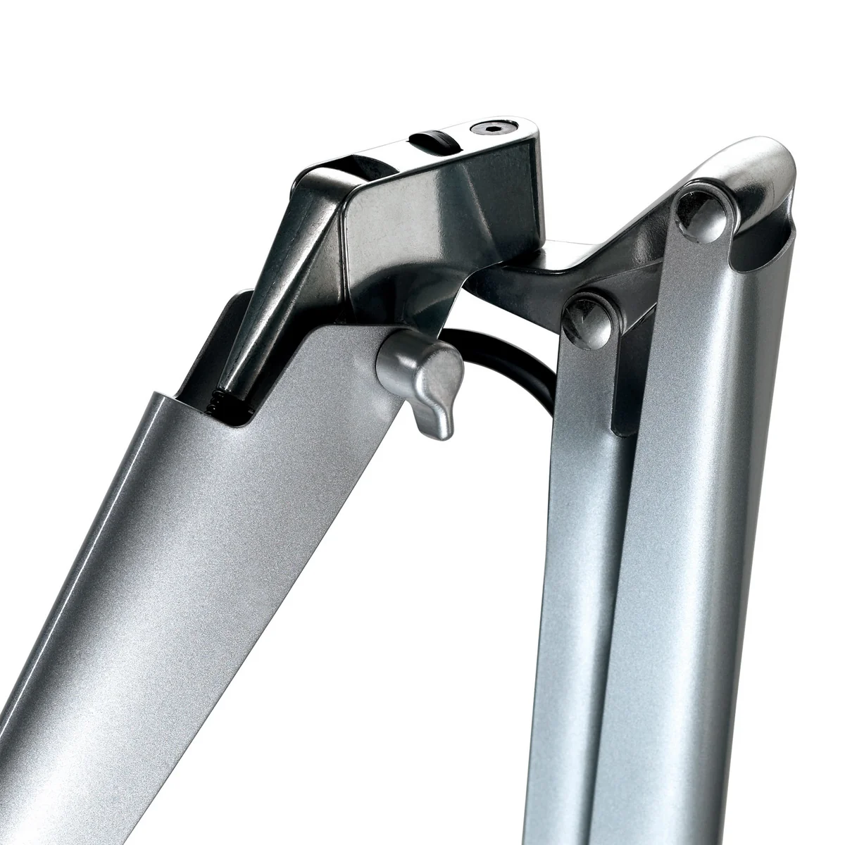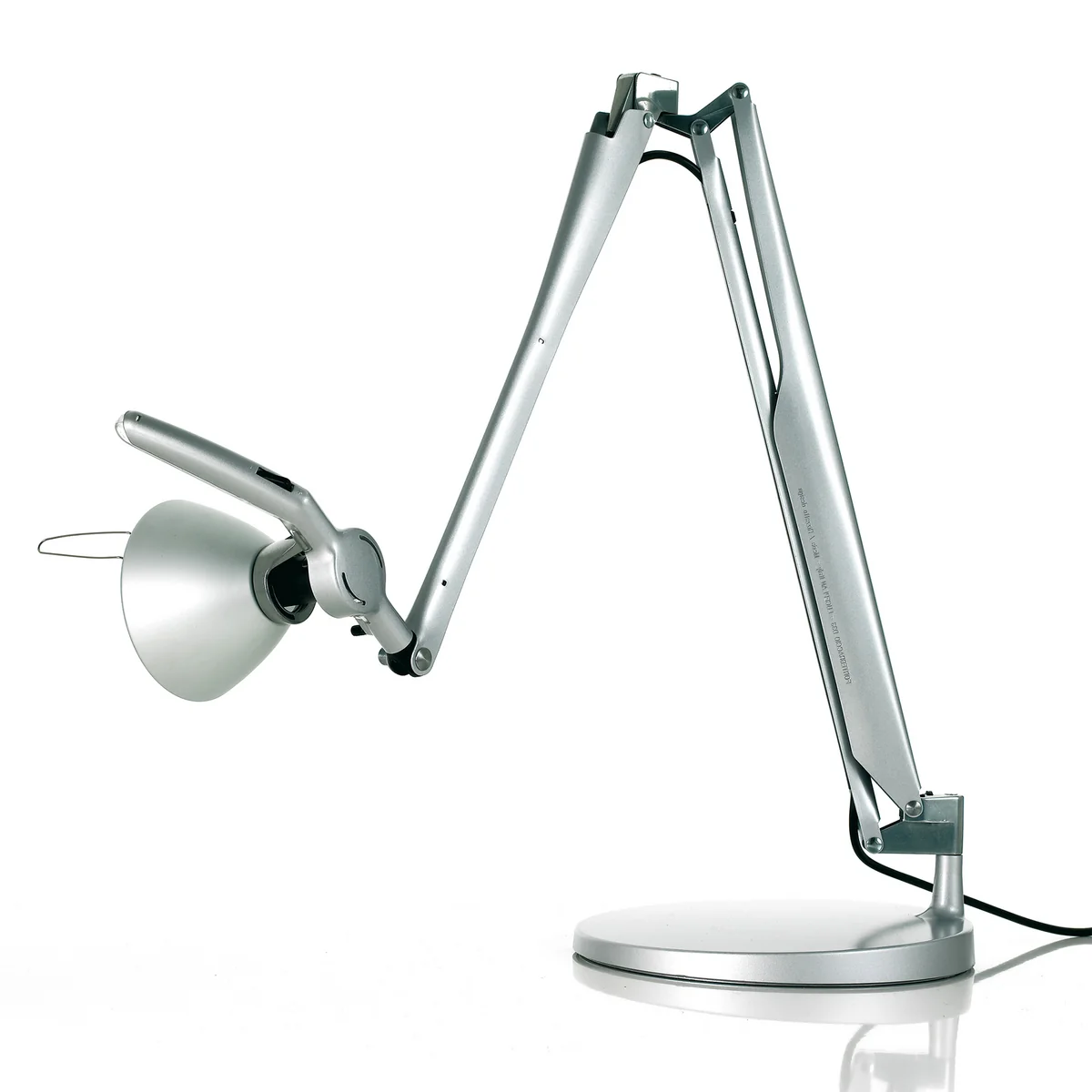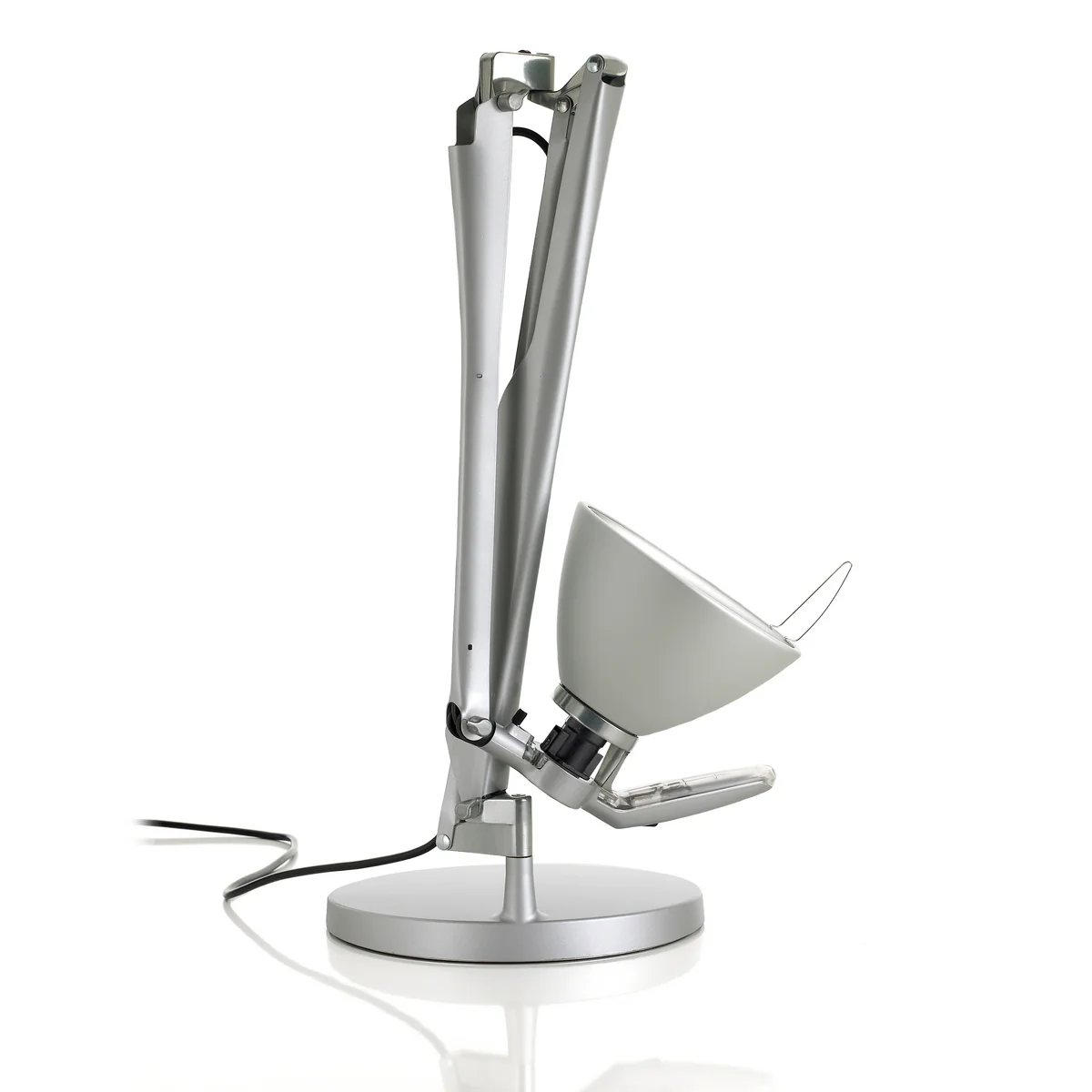 Ein zentrales Gelenk zwischen den Armen der Leuchte gewährleistet größtmögliche Flexibilität. Die Arme können unabhängig voneinander horizontal und vertikal ausgerichtet werden und so auch extreme Positionen annehmen. Dies erlaubt die Ausleuchtung jedes Winkels sowie das platzsparende Zusammenfahren der Leuchte, die gleichzeitig zur Skulptur wird.