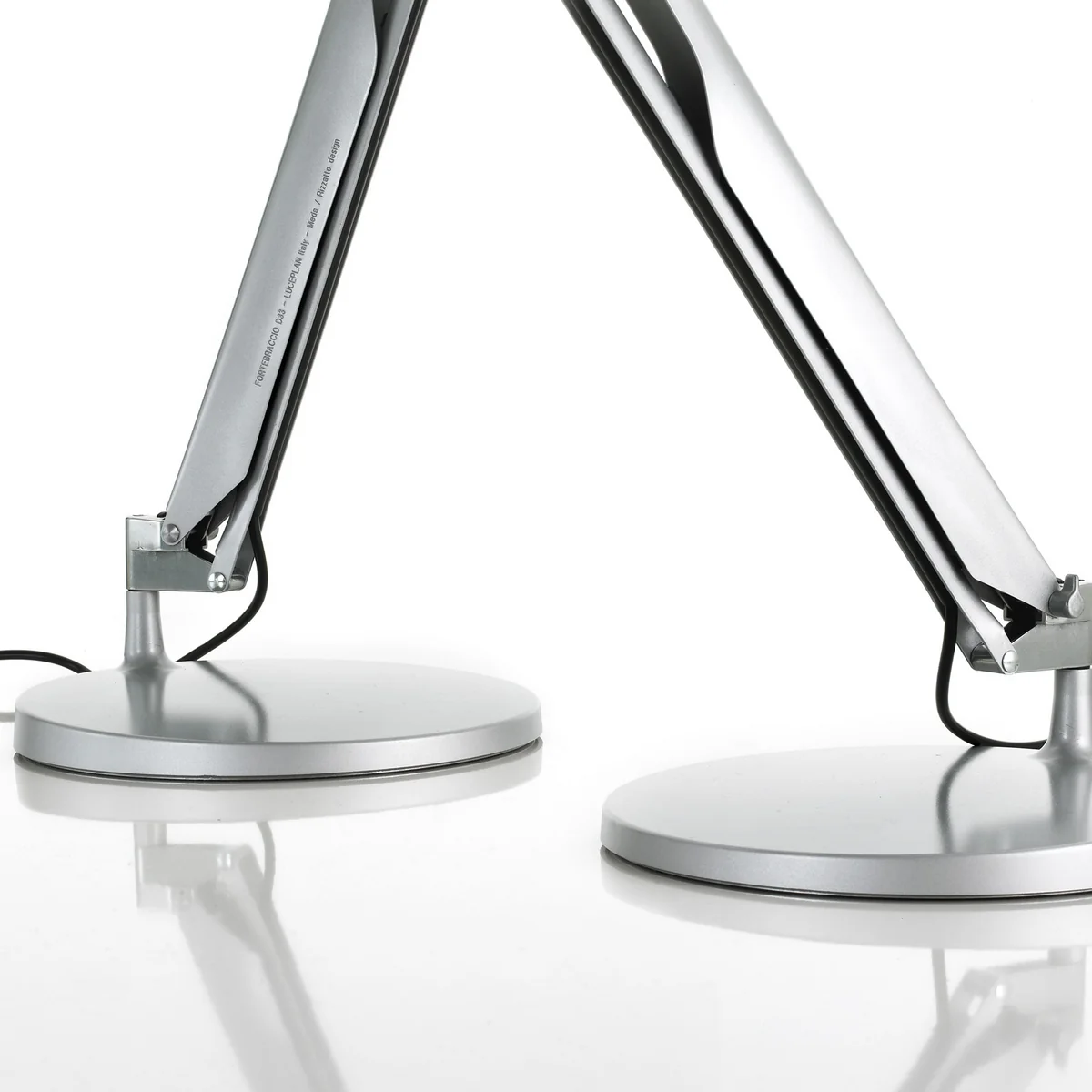 Die Tisch- und Arbeitsleuchte Fortebraccio wird von Luceplan in verschiedenen Farben und mit diversen Füßen und Befestigungen angeboten.
