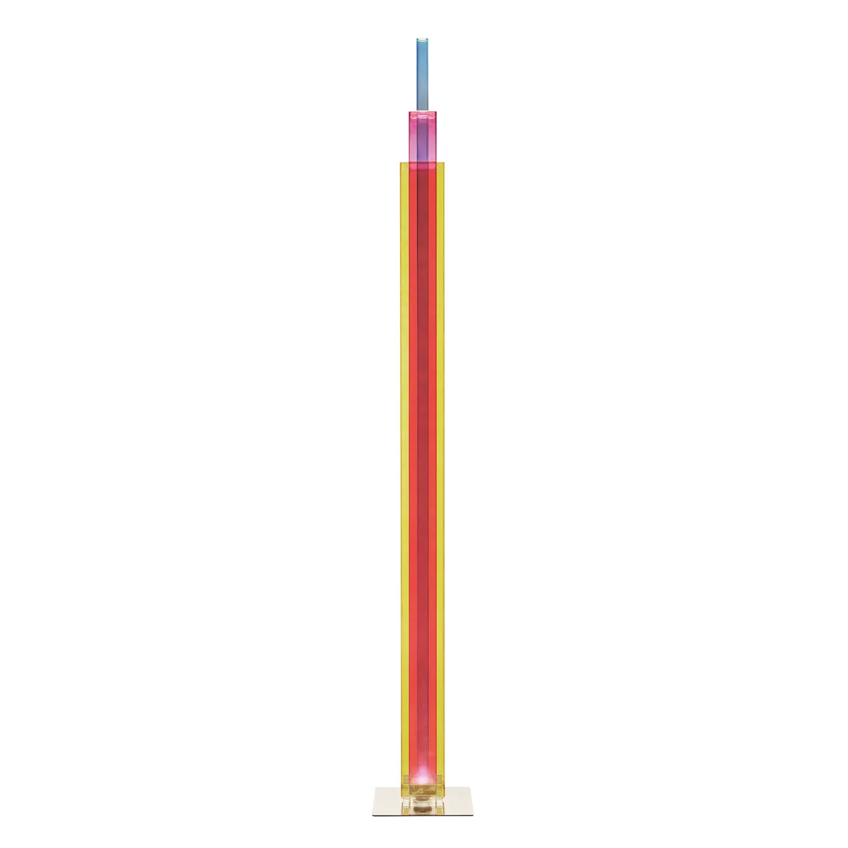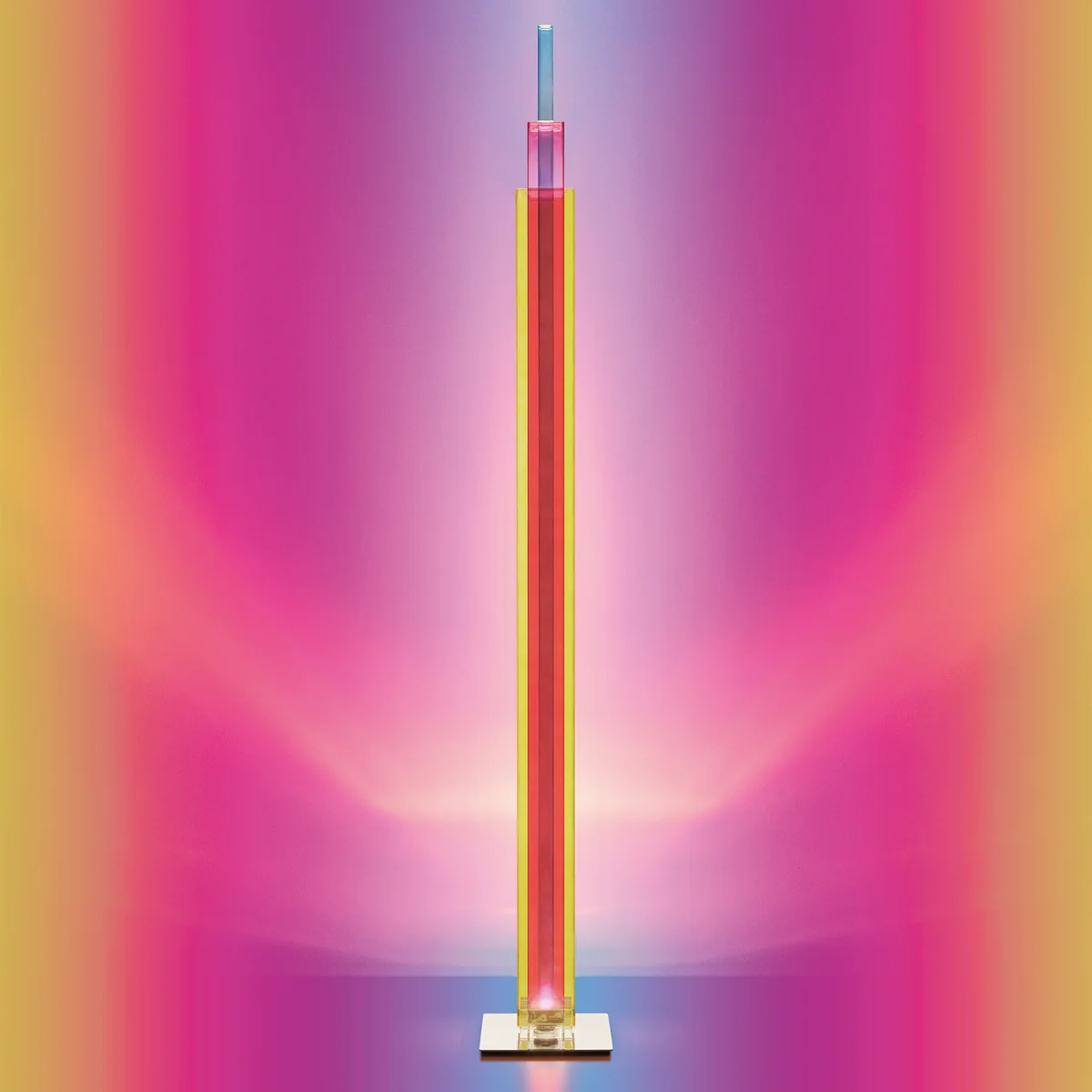 Die UpTown Stehleuchte des italienischen Herstellers Foscarini begeistert mit seinem außergewöhnlichen Design und damit verbunden der starken Präsenz dieser Leuchte. Drei überlagernde Flachglasvolumina, welche in den Farben Gelb, Rot und Blau gefärbt sind, verleihen den Farbtönen eine besondere Dimension. UpTown ist bereits im ausgeschaltetem Zustand ein echter Blickfang, kaum ist sie jedoch eingeschaltet, erstrahlt sie den gesamten Raum. Die Stehleuchte breitet ihren Farbschimmer von den Wänden bis sogar zu den Decken Ihres Raumes aus.