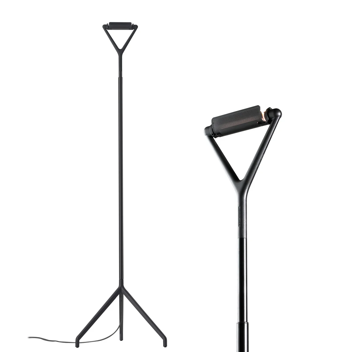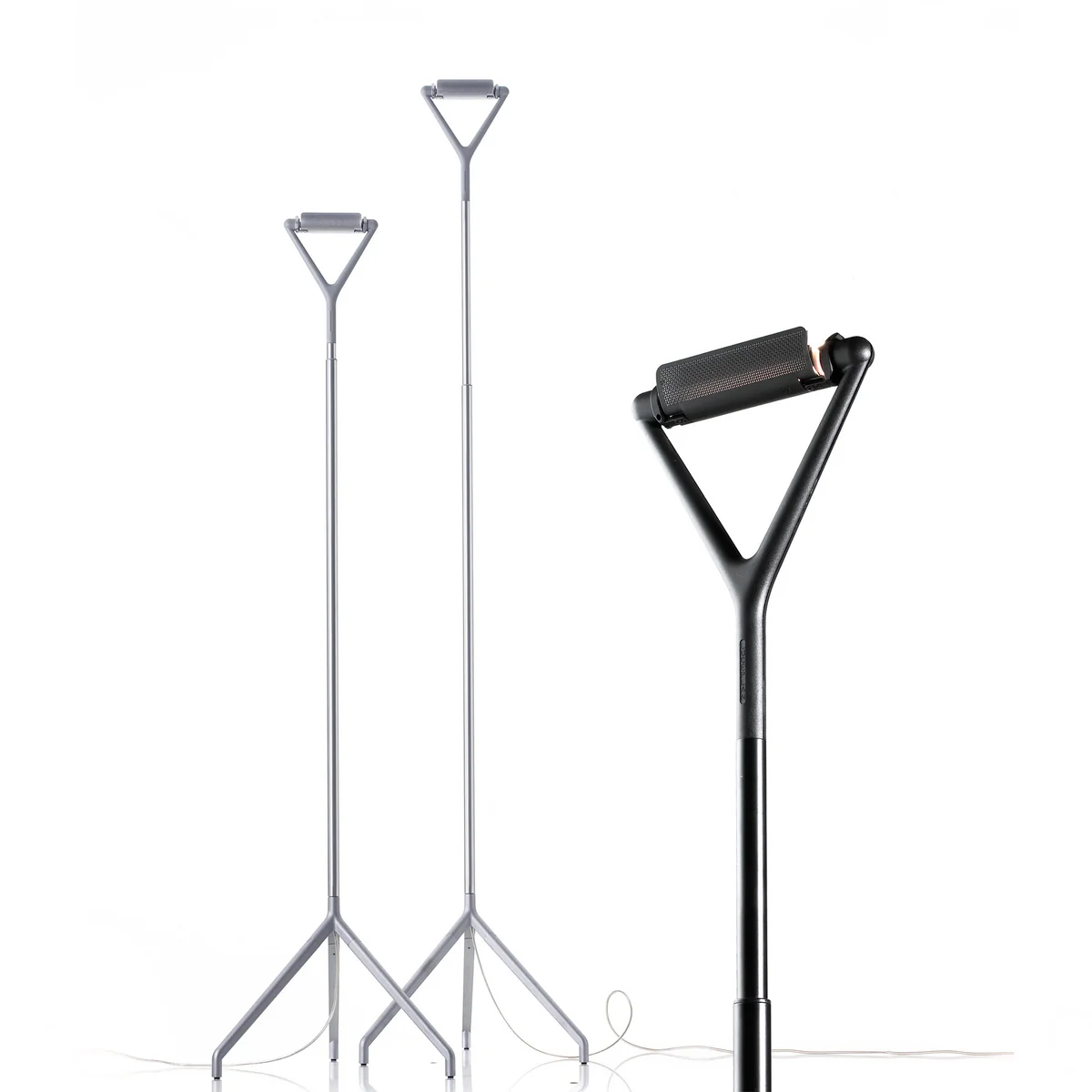 Die Lola Stehleuchte wurde 1989 von Alberto Meda und Paolo Rizzatto für Luceplan entworfen. Das schlanke Teleskopgestell erlaubt das Verstellen der Höhe zwischen 160 und 200 Zentimetern. Der Reflektor am Kopf der Leuchte spendet direktes und indirektes Licht und kann individuell präzise ausgerichtet werden.
