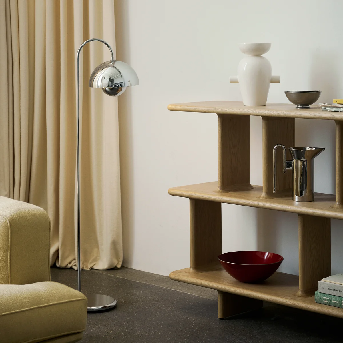 Die FlowerPot Stehleuchte VP12 von &Tradition ist ein Meisterwerk der 1960er Jahre, das bis heute nichts von seiner Faszination verloren hat. Mit ihren sanften, runden Formen und der harmonischen Farbgebung erinnert die Leuchte an die Flower-Power-Ära und strahlt gleichzeitig eine zeitlose Eleganz aus. Die Leuchte besteht aus lackiertem Metall und Edelstahl, was ihr eine langlebige und stabile Struktur verleiht.