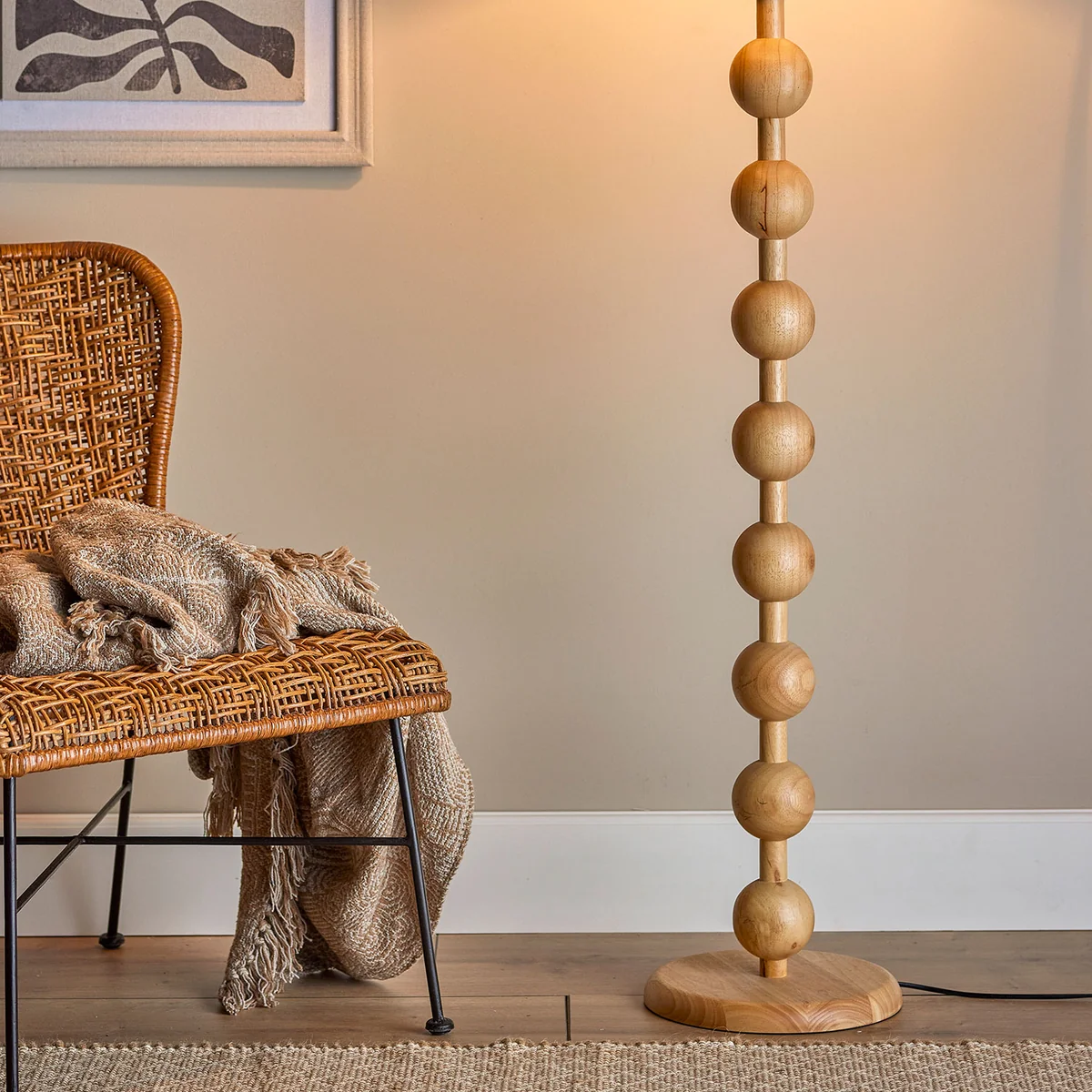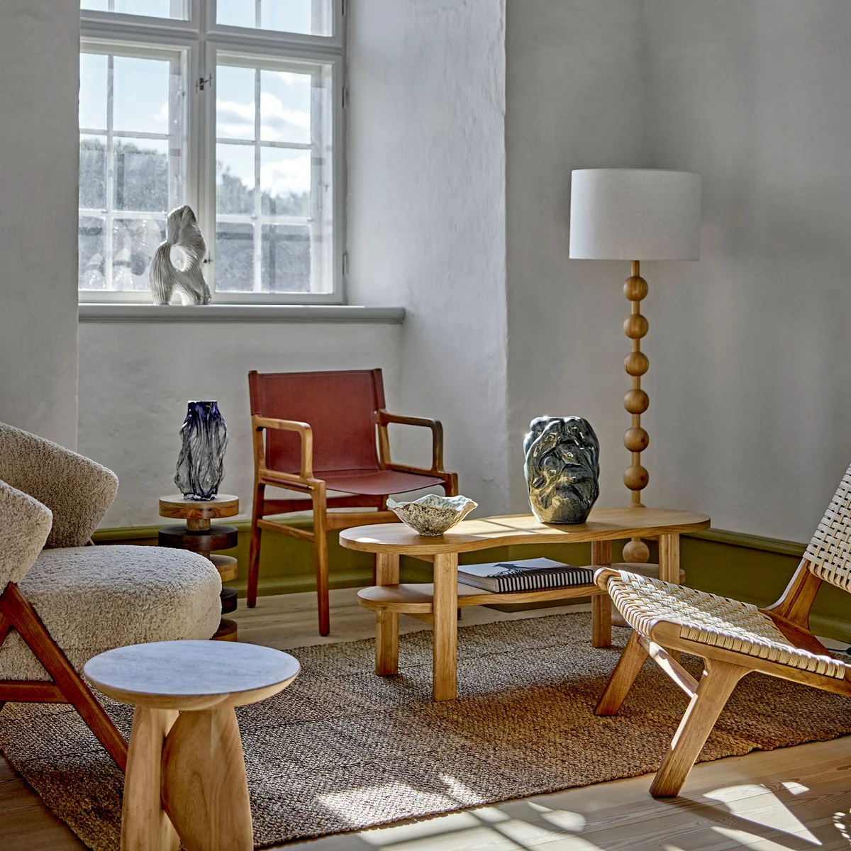 Die Giacoma Stehleuchte verbindet organische Formen mit zeitloser Ästhetik. Gefertigt aus Gummibaumholz, bringt sie Wärme und Charakter in jeden Raum. Der schlichte, neutrale Lampenschirm ergänzt das skulpturale Design harmonisch und fügt sich stilvoll in verschiedene Einrichtungsstile ein.