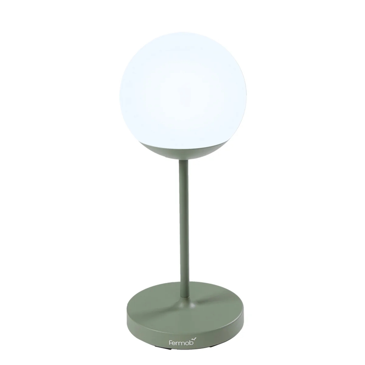 Die MOOON! Akku LED-Stehleuchte von Fermob ist mit Gestellen in verschiedenen Farben erhältlich. Passend zu der Stehleuchte ist auch eine Mooon! Akku LED-Tischleuchte erhältlich.