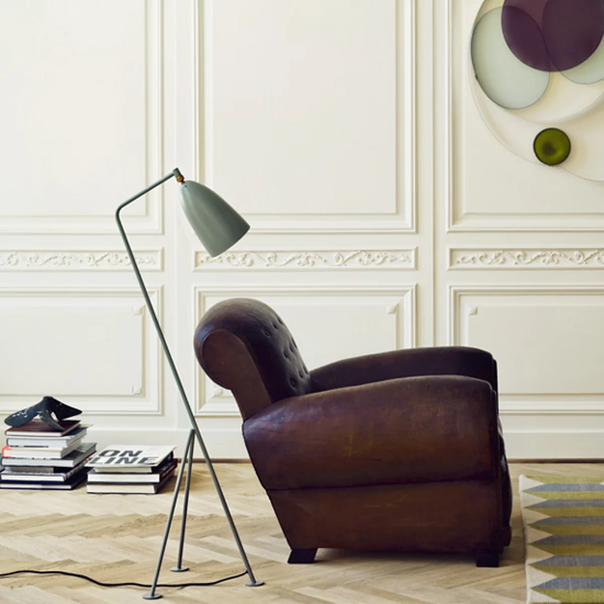 Die Gräshoppa Stehleuchte GM1 von Gubi verkörpert eine stilvolle Zeitlosigkeit. Die dreibeinige GM1 von 1947 ist eine der wichtigsten Arbeiten der schwedisch-amerikanischen Designerin Greta Magnusson Grossman.