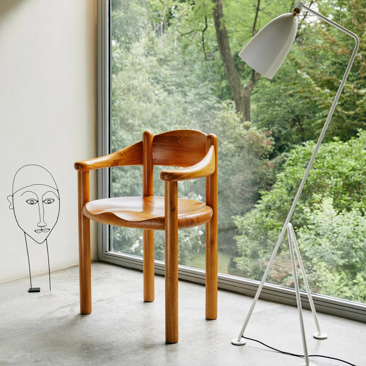 Das Design der Stehleuchte hat über die Jahrzehnte nichts von seinem individuellen Charme verloren. Seit 1947 ist der Entwurf zu einem echten Klassiker geworden: Durchdacht und ausgereift präsentiert sich Gräshoppa auch noch heute. Egal ob als Leseleuchte neben der Couch, als Dekoration in leeren Ecken oder als Blickfänger im Raum - Gräshoppa passt überall.