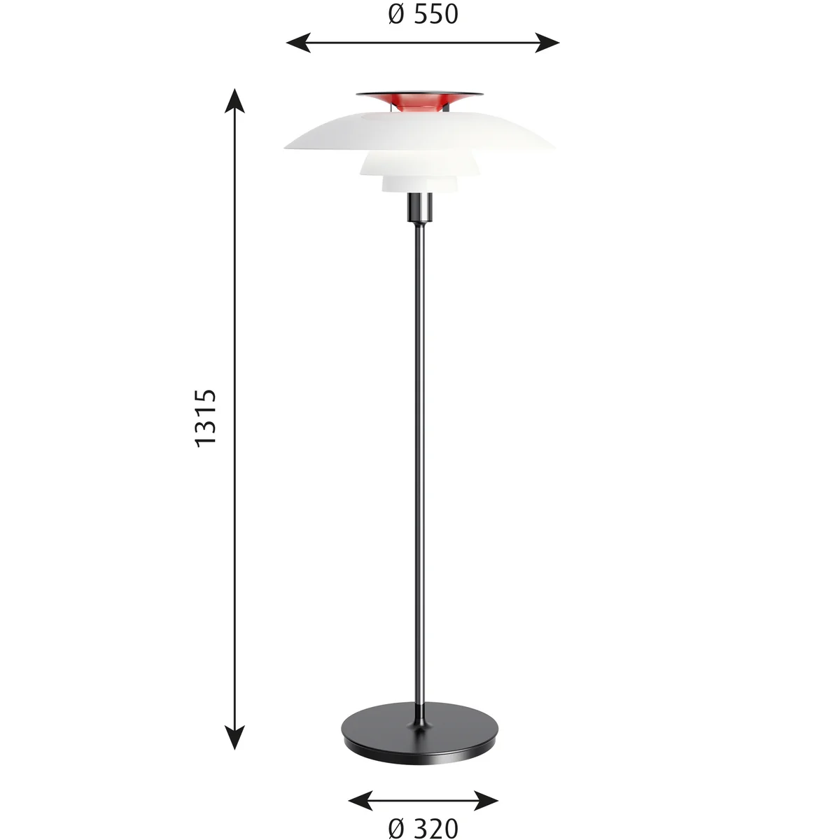 Die PH 80 Stehleuchte ist eine stilvolle, elegante Stehleuchte für das Wohnzimmer. Der dreiteilige Leuchtenschirm spendet blendfreies Licht und einen weichen Schatten. Designer Poul Henningsen war der Erste, der sich auf wissenschaftlicher Basis mit dem Licht befasste und hierzu die logarithmische Spirale nutzte. Mit ihrer Hilfe und durch den Einsatz von Glas erzielte er eine gleichmäßige Verteilung des Lichts und eine diffuse Reflexion, d. h. Blendeffekte und Schattenwirkung ließen sich nach Wunsch beeinflussen. Durch die einzelnen Schirmelemente wird die Helligkeit gleichmäßig gedämpft.