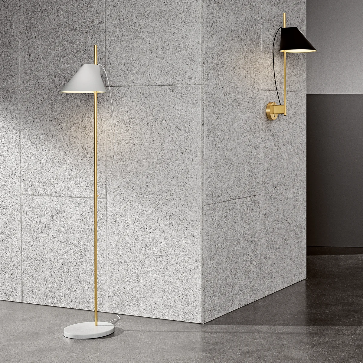 Stine Gam und Enrico Fratesi, die Designer der Yuh Stehleuchte LED, ließen sich bei ihrem Entwurf von den klassischen Werten des dänischen Designs inspirieren. Mit beeindruckendem Fachwissen über die Designgeschichte und in Anlehnung an Arne Jacobsens Studien zu geometrischen Formen huldigen GamFratesi mit ihrem Entwurf Yuh dem legendären Designer. Dabei lassen sie auch die für sie charakteristische verspielte Ästhetik einfließen.