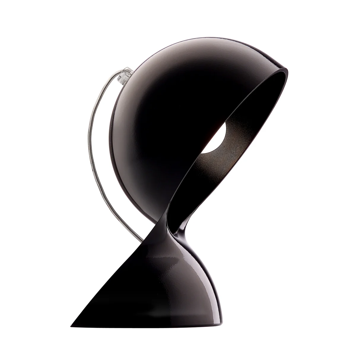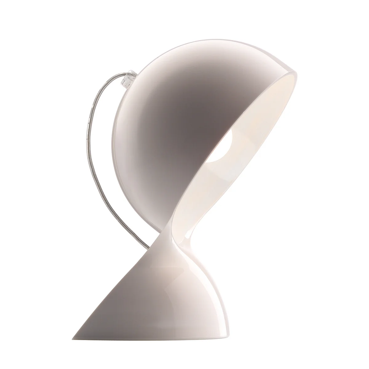 Die geschwungene Form der Leuchte wird aus thermoplastischem Material im Spritzgussverfahren gefertigt und erhält dadurch ihre nahtlose Oberfläche. Insgesamt zeichnet sich die Dalù Tischleuchte durch ihr geometrisches Erscheinungsbild mit dem markanten Halbkreis aus, in dem das Leuchtmittel als Teil der Konstruktion sichtbar wird. So spendet die Leuchte direktes Licht, was zum Lesen oder Arbeiten dient, kann jedoch auch - wenn die offene Seite zur Wand gedreht wird - indirekt den Raum erhellen, indem das Licht insbesondere bei den transparenten Varianten sanft durch das Gehäuse dringt.