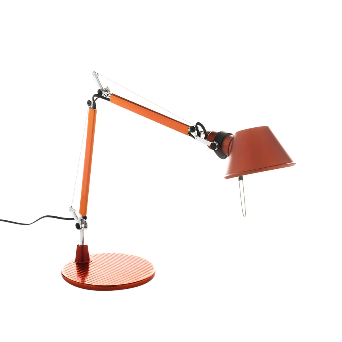 Tolomeo Micro besitzt flexible, ausrichtbare Arme aus glänzendem Aluminium. So kann das Licht der Leuchte genau dorthin gelenkt werden, wo Sie es benötigen. Der verstellbare Leuchtenkopf erlaubt außerdem weitere Feineinstellungen. Der Kopf besteht aus matt-eloxiertem Aluminium, Gelenke und Halterungen aus poliertem Aluminium mit Federausgleichsystem.