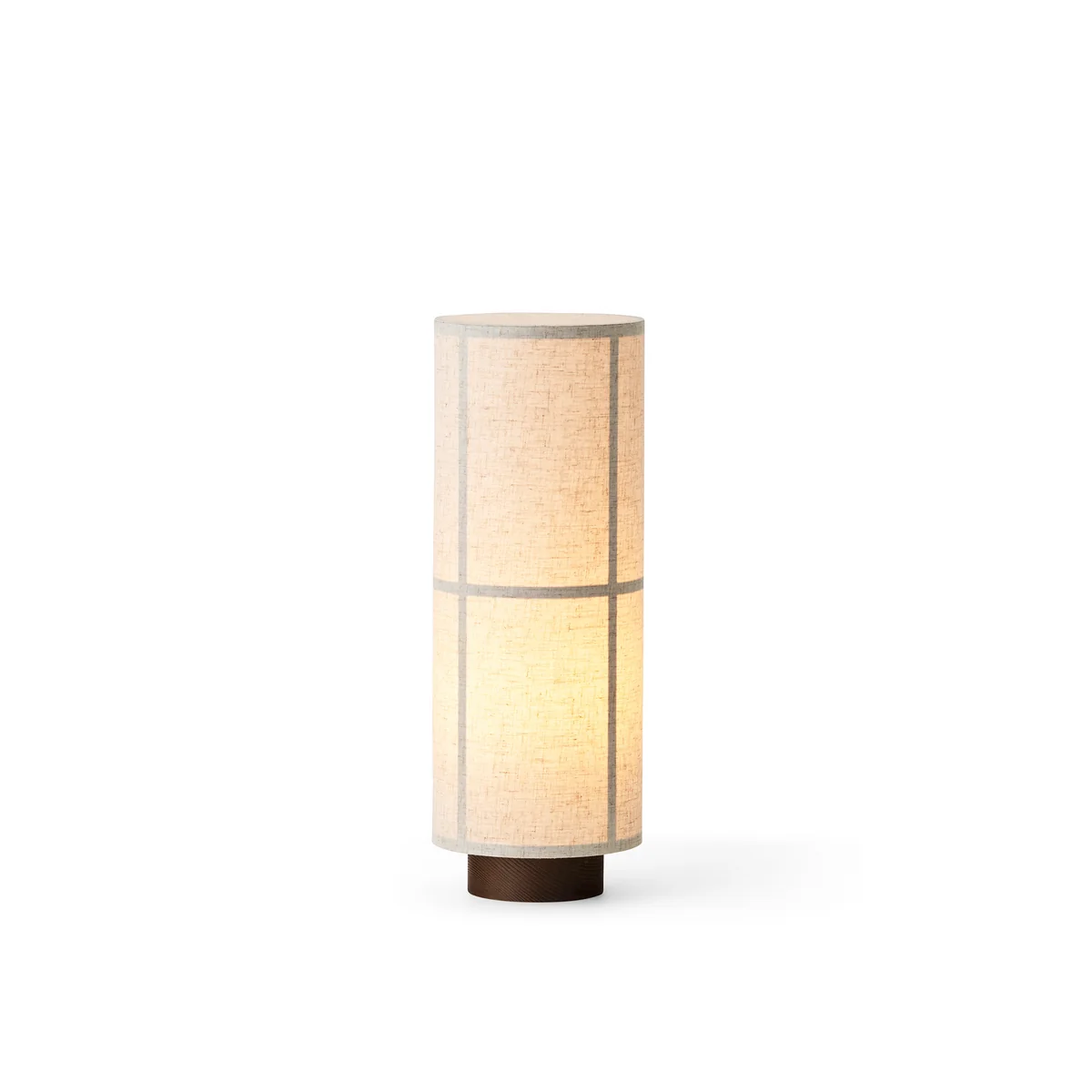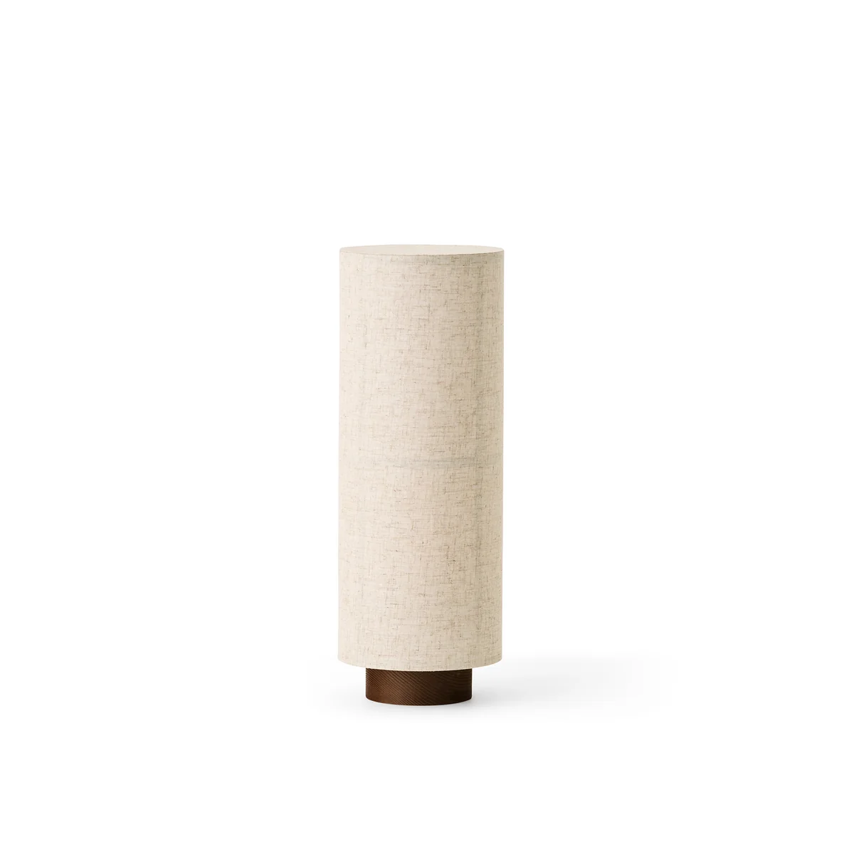 Durch das feine Leinengewebe scheint das Licht sanft sowie blendfrei hindurch und erzeugt damit eine gemütliche Atmosphäre im Raum. Wäre erzeugt zudem ein flacher Sockel aus Eschenholz. Als Nachtlicht neben dem Bett oder Hintergrundbeleuchtung im Wohnzimmer spendet die Leuchte von Norm Architects ein angenehmes Licht.