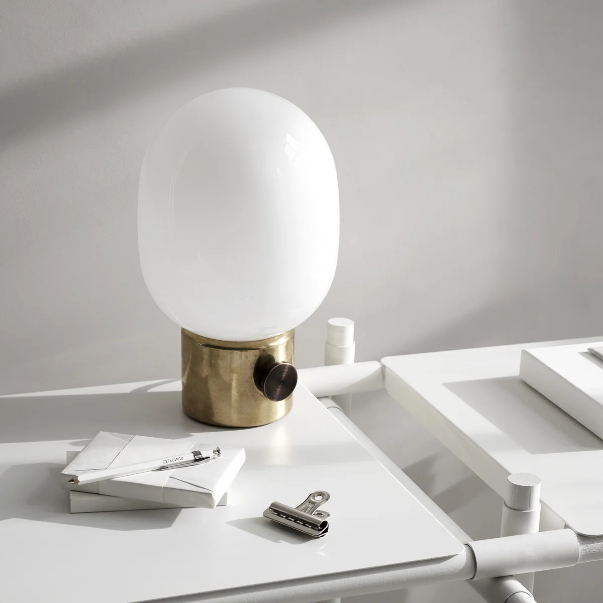 Die JWDA Tischleuchte von Audo ist elegant und robust zugleich. Die zarte Glaskuppel wird mit dem Sockel aus Beton, Stahl oder Messing zu einer besonders formschönen Leuchte vereint, die mit einem zeitlosen Design und industriellem Charakter besticht.