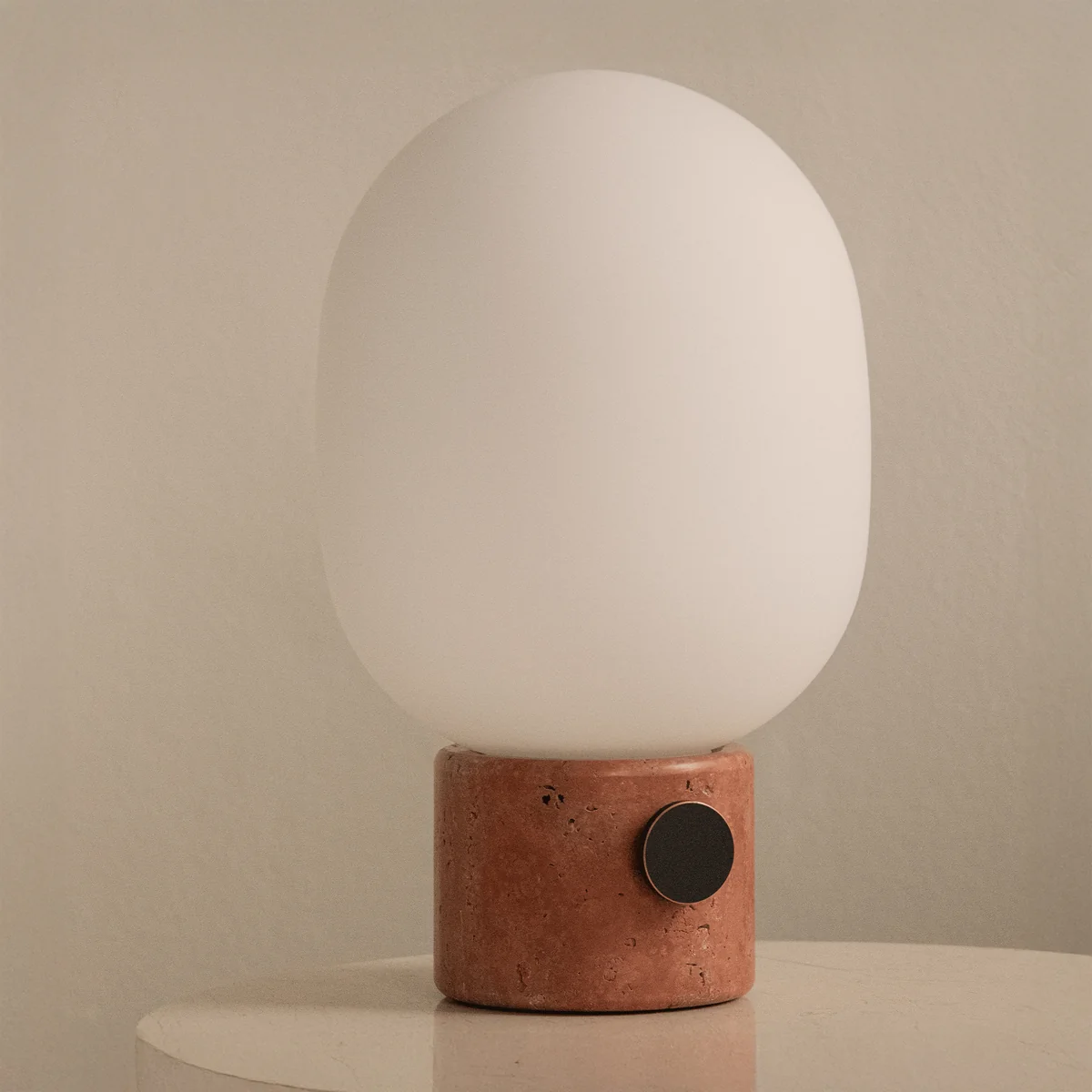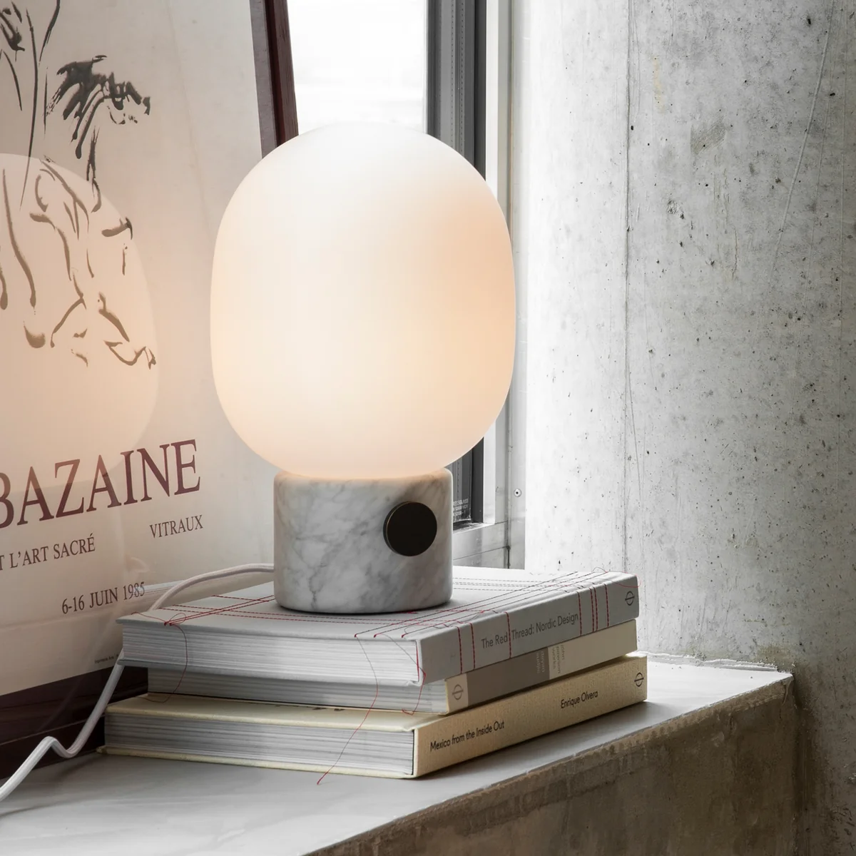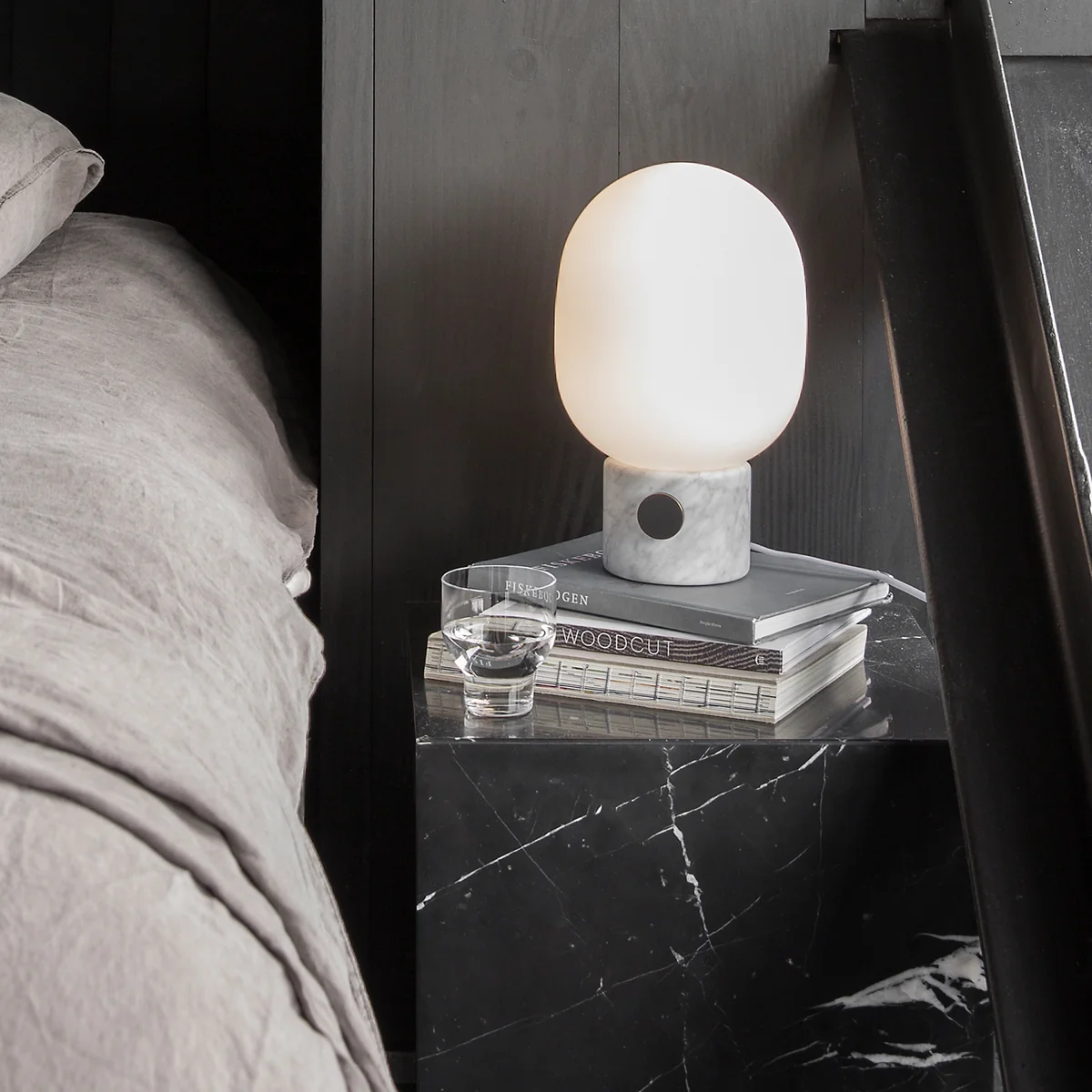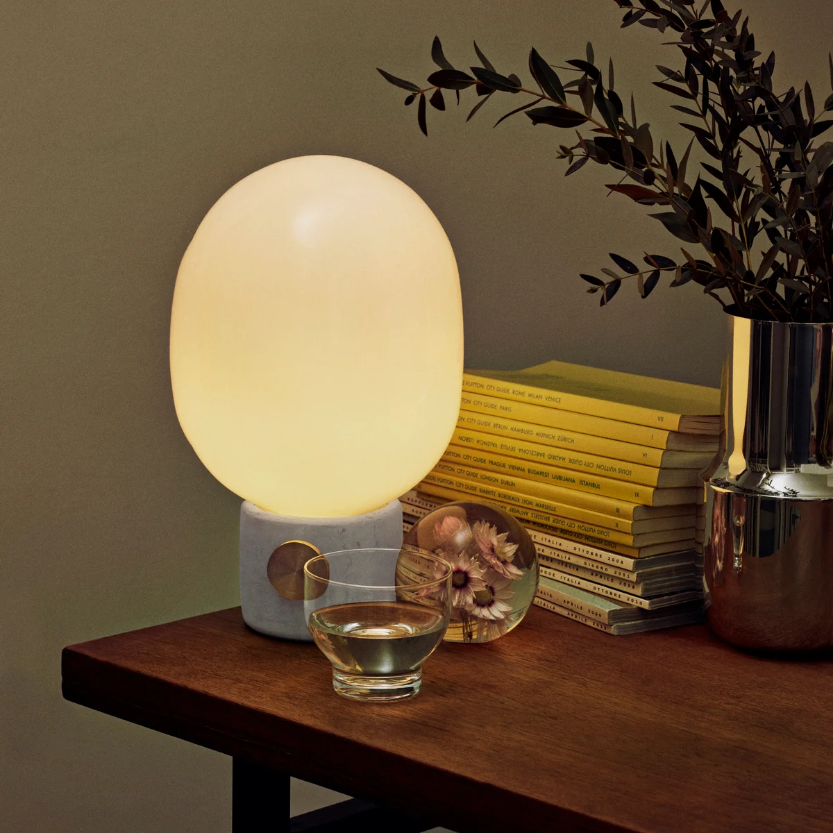 Der Stockholmer Designer Jonas Wagell kombiniert bei dieser schönen Leuchte einen spannenden Materialmix aus Opalglas und verschiedenen Sockeln aus Beton, Messing oder Stahl. Damit verleiht die Leuchte dem Raum eine behagliche Atmosphäre.