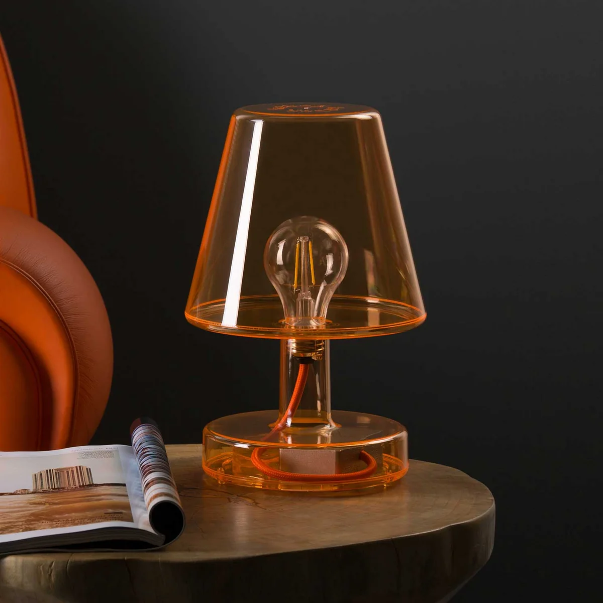 Im Gegensatz zur Edison The Petit gibt Transloetje den Blick auf sein Innenleben frei: Dabei präsentiert die tragbare Tischleuchte im Retro-Design dem Betrachter eine LED Lampe in Form einer traditionellen Glühbirne, die durch ein Kabel mit dem Akku in der Basis verbunden ist.