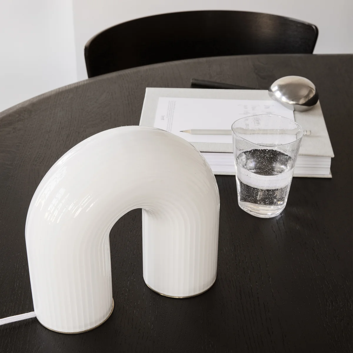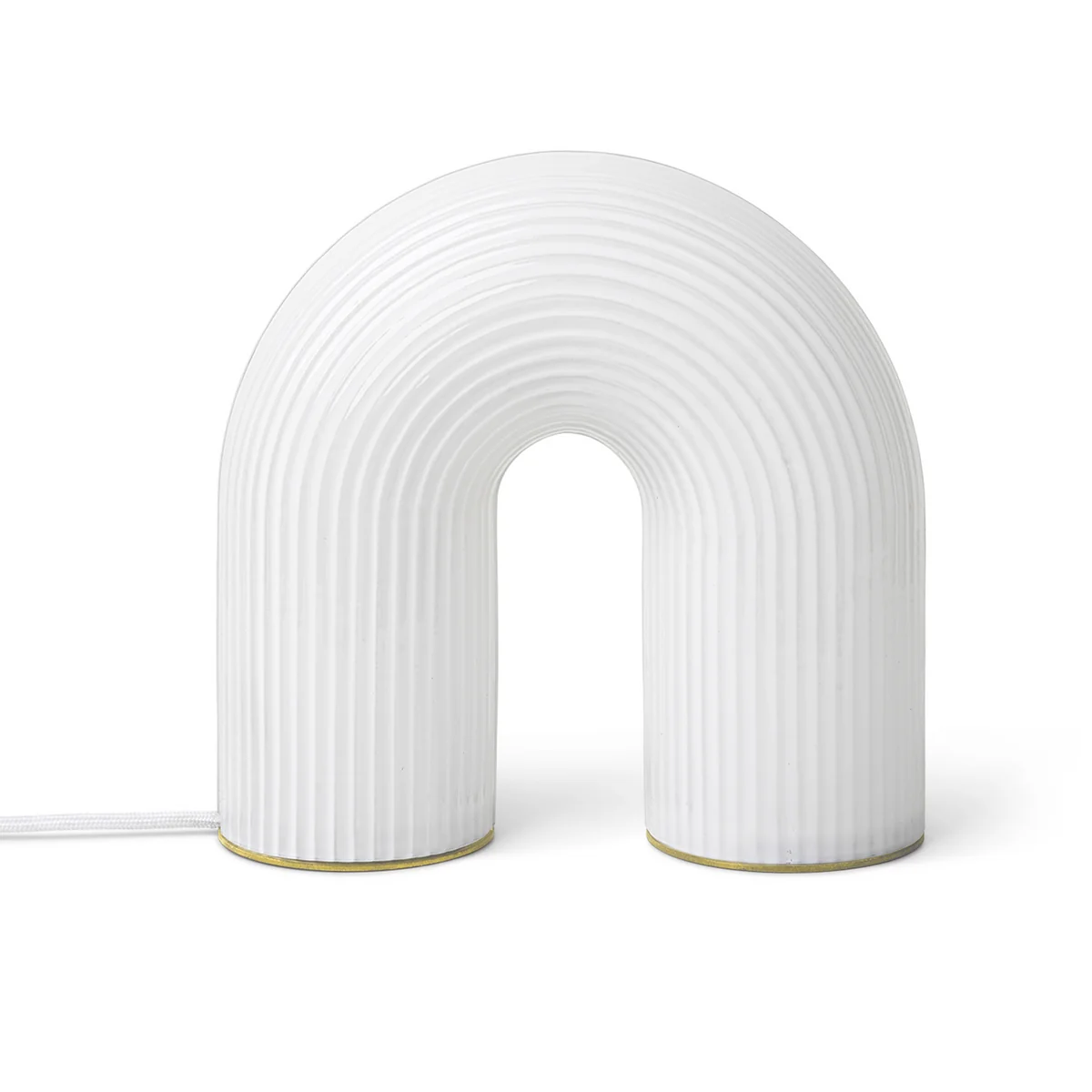 Die Vuelta Tischleuchte von Ferm Living zeichnet sich durch ihre einzigartige Form aus, welche die Leuchte im ausgeschalteten Zustand nicht auf den ersten Blick als solche erkennen lässt. Die Silhouette der Tischleuchte gleicht einem Bogen und erinnert an antike, skulpturale Säulen. Gefertigt ist die Vuelta Tischleuchte aus geriffeltem Opalglas, das für ein extravagantes Spiel aus Licht und Schatten sorgt.