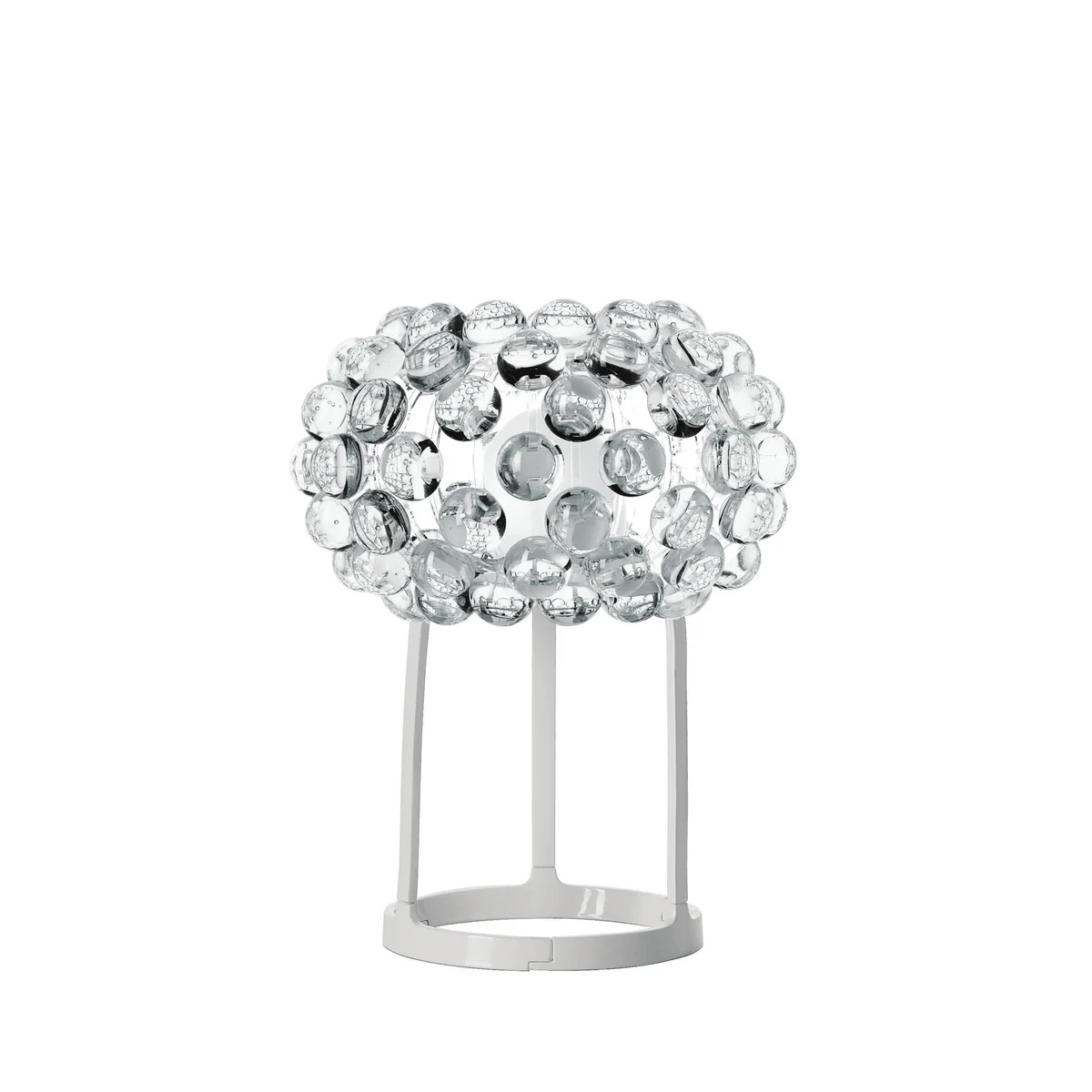 Die Designerinnen Patricia Urquiola und Eliana Gerotto nahmen sich für das Design der Caboche Leuchten ein simples Perlenarmband zum Vorbild. Inspiriert von Struktur und Form des Schmuckstücks schufen sie ein einzigartiges Design, das für ein beeindruckendes Lichtspiel sorgt. Die auf dem Glasschirm aufsitzenden Kugeln aus Polymethylmethacrylat reflektieren das Licht und lassen die Leuchte kristallähnlich strahlen, während das direkte Licht der Foscarini-Leuchte nach oben und unten scheint.