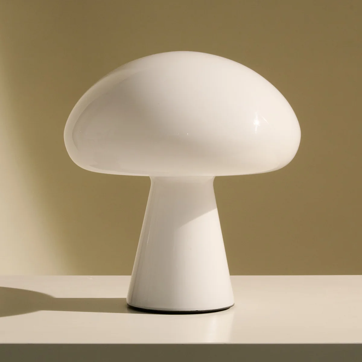 Die Obello Tischleuchte LED Outdoor des italienischen Herstellers Gubi wurde bereits 1971 vom amerikanischen Designer Bill Curry designt und gilt als Pionier der ersten "Total Look" Leuchte. Mit seiner einzigartigen Glasform, die einen seperaten Sockel überflüssig macht begeistert Obello seit Jahrzehnten bereits die Massen. Die Pilz-Optik wurde vom Atomzeitalter, dem Weltraumrennen und der Popkultur, welche Los Angeles in den1970er Jahren prägte, inspiriert.