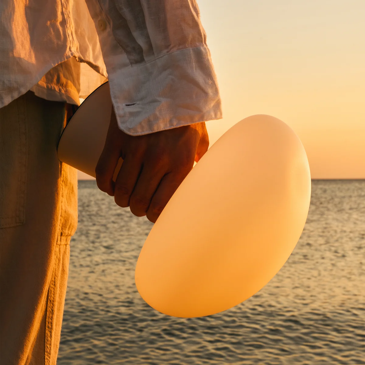 Der Schirm der Akkuleuchte wird aus Milchglas hergestellt. Obello verfügt über einen Touch-Dimmer.