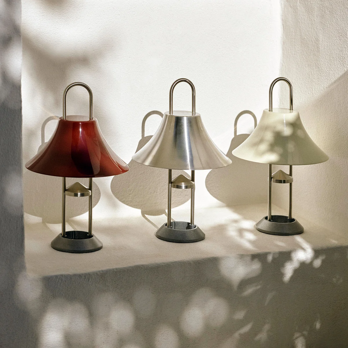 Die Mousqueton Portable LED Leuchte von Inga Sempé für den dänischen Hersteller HAY ist eine überaus ästhetische Outdoor-Leuchte. Technische Elemente sind in einem dekorativen Design integriert. So kann der Karabinerhaken der Leuchte bei Bedarf an einem Ast oder Seil aufgehängt werden. Der Körper der Mousqueton-Leuchte wird aus wetterfestem Edelstahl und einer Zinklegierung gefertigt. Der Schirm ist in einer Vielzahl von Farben erhältlich. Die Mousqueton Portable LED Leuchte kann je nach Wunsch sowohl im Innen- als auch Außenbereich verwendet werden.