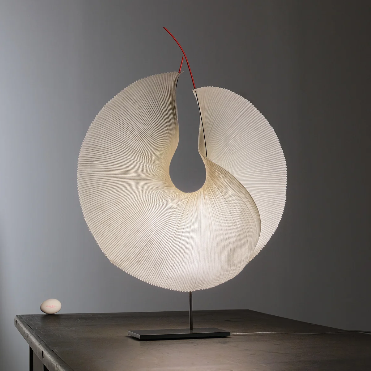 Kunstvolle Tischleuchte aus aufgespanntem Papier