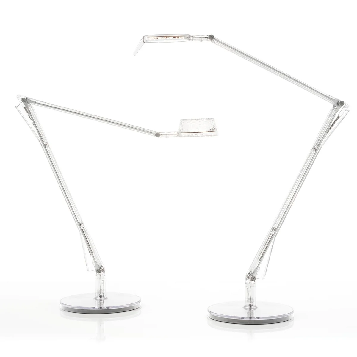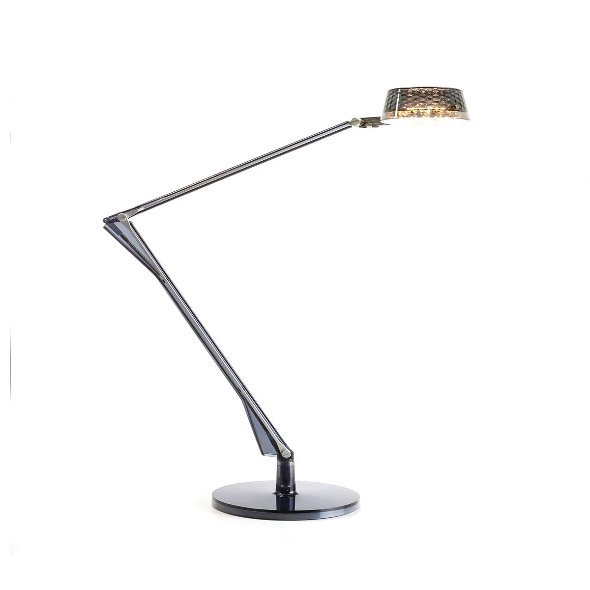 Die Dec Variante der Leuchte zeichnet sich durch das facettierte Dekor des kegelförmigen Diffusors aus. Der Lichtstrahl ist breiter und verleiht dadurch ein angenehmes Licht, womit die Kartell-Leuchte ideal für den Wohnbereich geeignet ist.