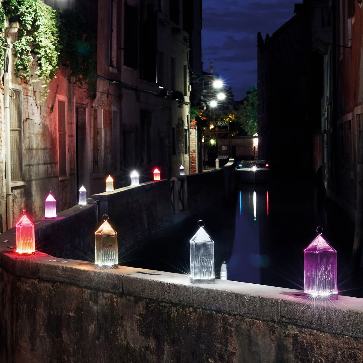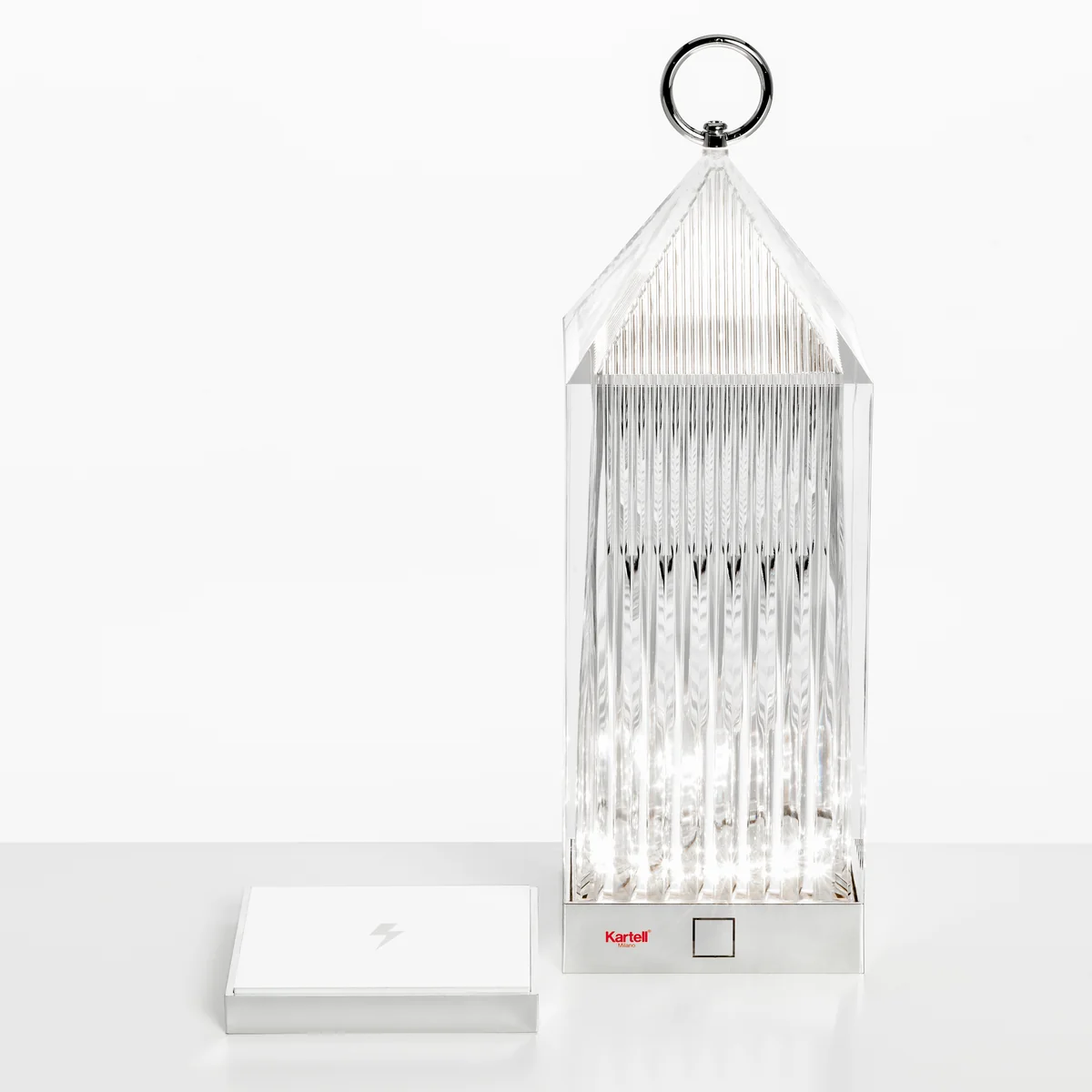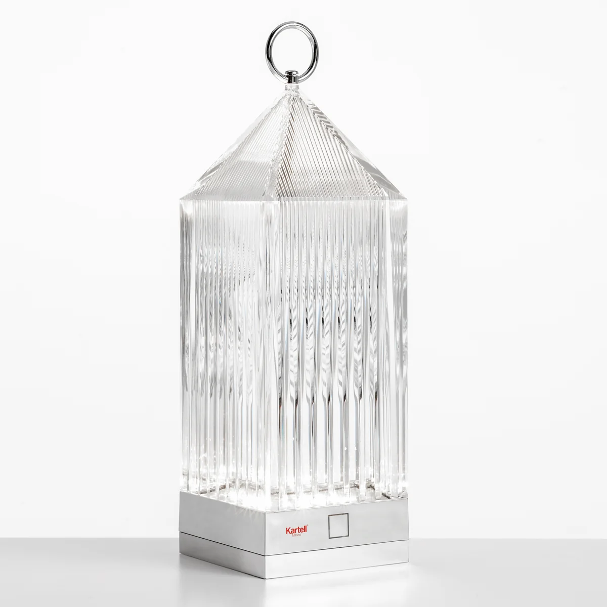 Die Lantern LED-Leuchte von Kartell ist ein stilvoller und zugleich praktischer Begleiter, der bei Dunkelheit den Weg weist. Die kabellose Leuchte in Form einer klassischen Laterne lässt sich für den Innen- sowie Außenbereich nutzen und ist dank ihres Griffs leicht zu transportieren. Die Idee für die portable Leuchte stammt vom dem italienischen Designer Fabio Novembre und ist ein Ausdruck seiner ganz persönlichen Erfahrungen.
