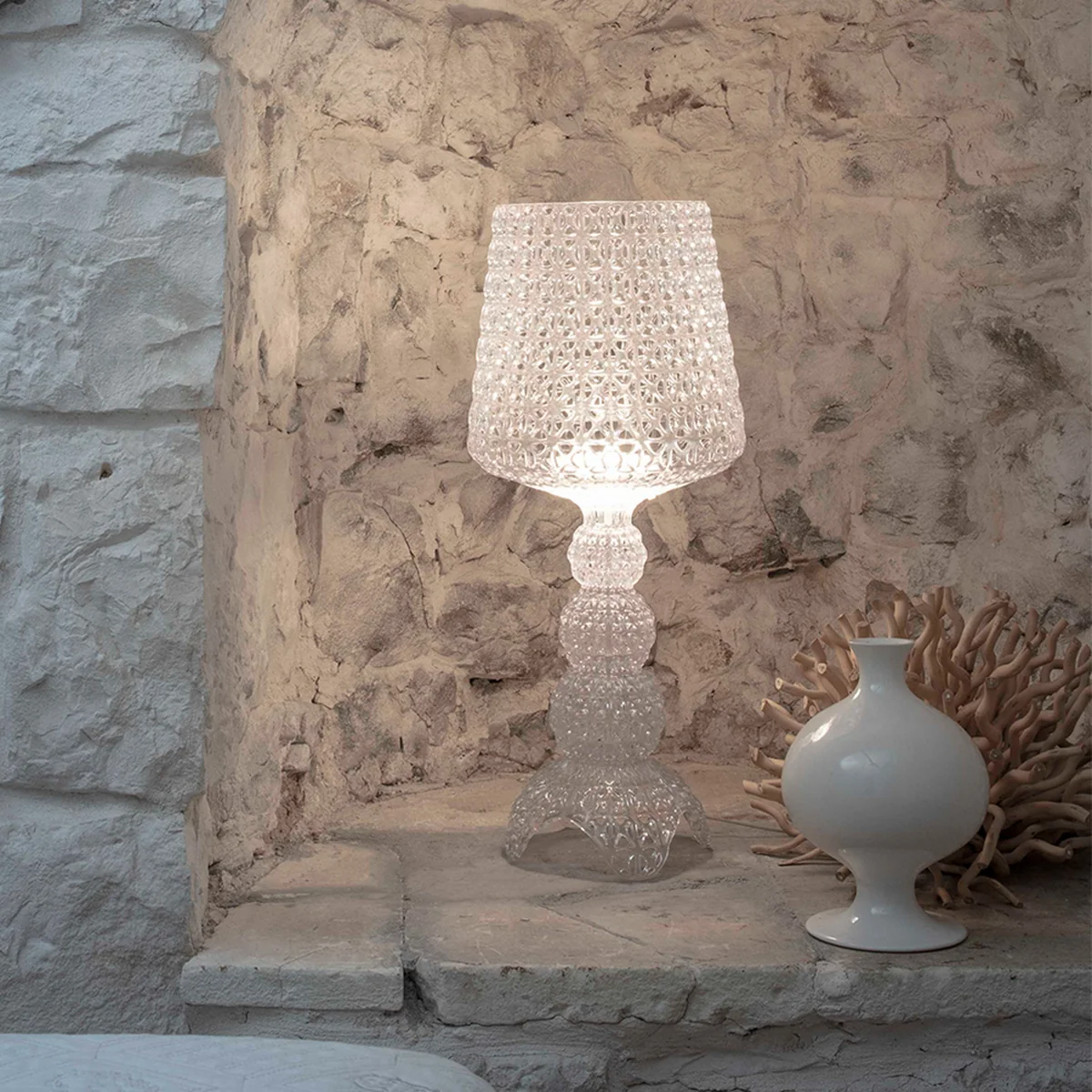 Die Mini Kabuki ist die Tischversion der Kabuki Leuchte von Ferruccio Laviani für Kartell, die mit Lichtspielen durch die raffinierte Lochstruktur verzaubert und so ein einzigartiges Ambiente schafft. Die Leuchte ist eine schöne Kombination aus Eleganz und Spritztechnologie: Sie besteht aus einem transparenten oder durchgefärbten thermoplastischen Technopolymer mit Spritzguss.