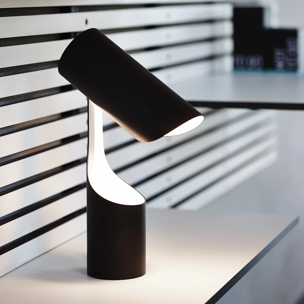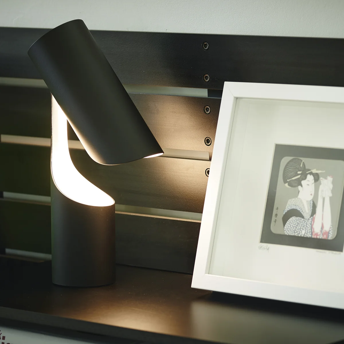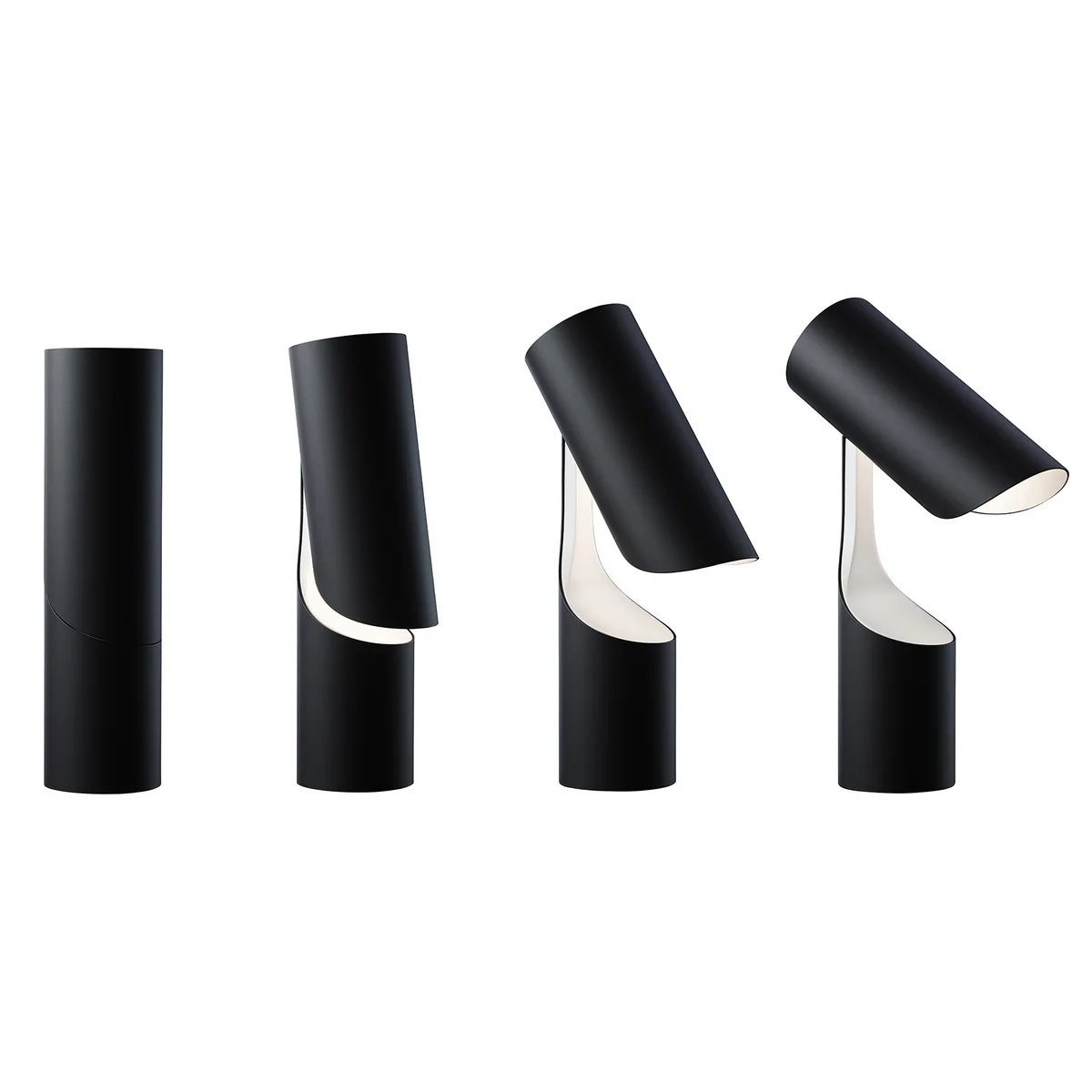 Aufgeklappt kann die Tischleuchte - dank beweglichem Schirm - einfach auf unterschiedliche Dinge gerichtet werden. Kunstobjekte können so perfekt in Szene gesetzt werden, aber auch als Leselampe am Schreib- oder Nachttisch kann Mutatio zum Einsatz kommen.