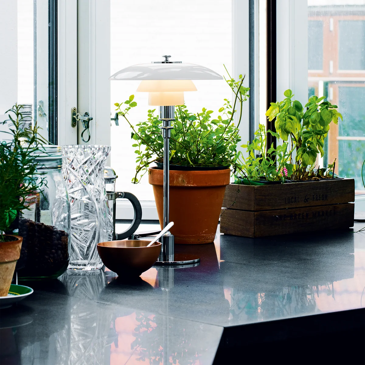 Durch ihre geringe Größe bietet die PH 2/1 Tischleuchte hervorragende Platzierungsmöglichkeiten in Räumen, in denen kleine Lichtpunkte geschaffen werden sollen, um die Stimmung angenehm zu gestalten und die Ausmaße des Raums zu unterstreichen.