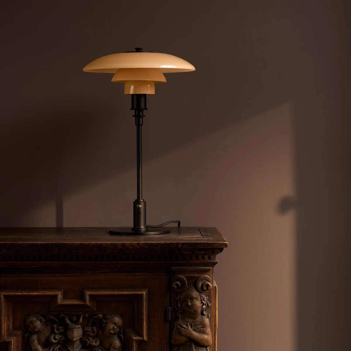 Die PH 3/2 Tischleuchte Dusty Terracotta – Limited Edition 2025 bringt das klassische 3-Schirm-Design von Poul Henningsen in einer neuen, warmen Farbgebung auf den Tisch. Der Leuchtenkörper besteht aus mundgeblasenem, vierlagigem Glas in einem satten Terrakottaton mit sandgestrahlter, weißer Unterseite. Ergänzt wird das Ensemble durch gebürstetes, gealtertes Messing mit feinen Haarlinien sowie durch einen durchdachten Details wie den Durchschalter aus Metall, das dunkle Textilkabel und die dezent eingravierten PH-Initialen.