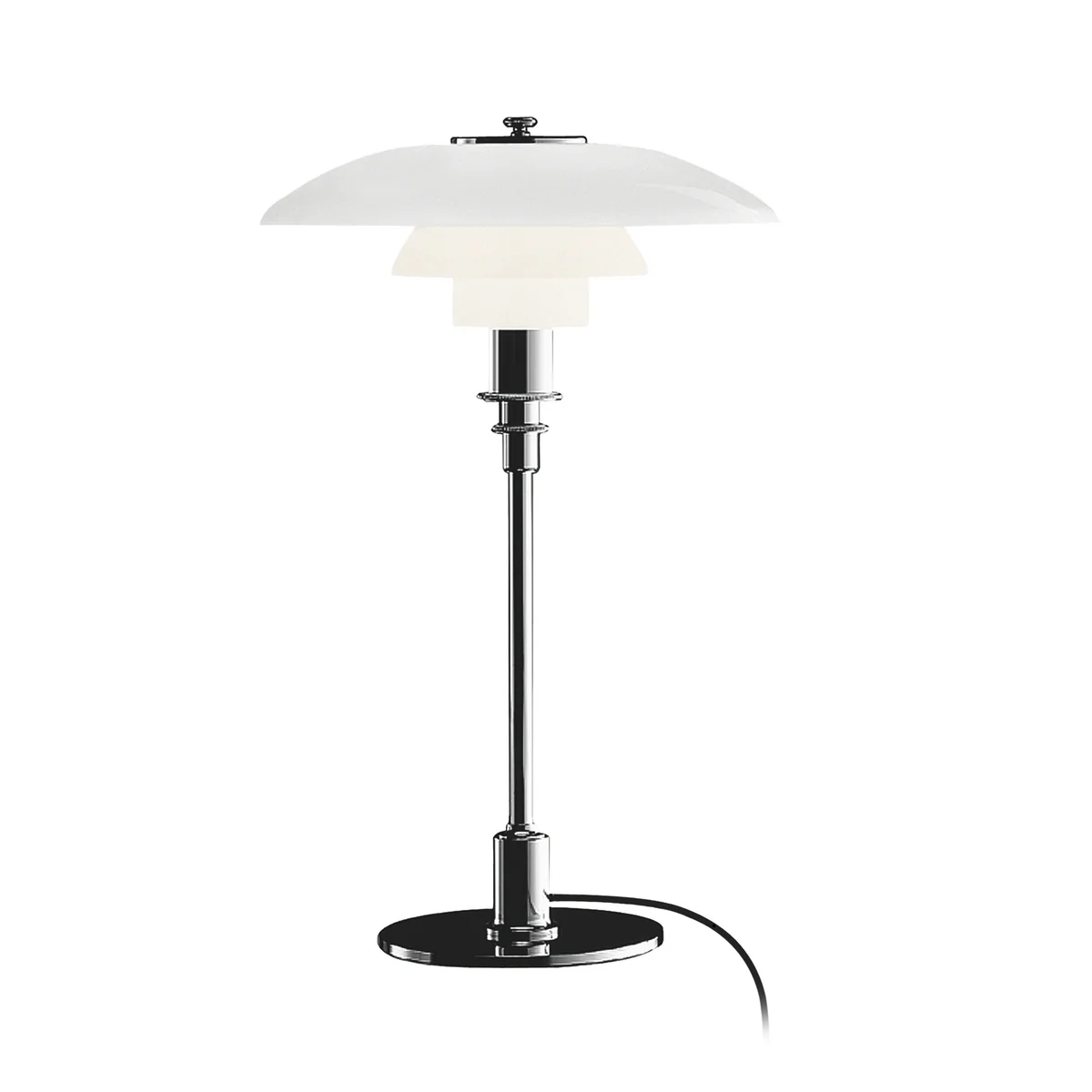 Die PH 3/2 Tischleuchte ist Mitglied der PH3-Schirm-Produktfamilie. Die Serie von Poul Henningsen wurde in einigen hektischen Monaten im Winter 1923-26 für eine Ausstellungshalle in Kopenhagen, genannt “Forum” ersonnen. Das PH 3-Schirm-System war anfänglich eine Pendelleuchten-Lösung, entwickelte sich aber sehr schnell zu anderen Leuchtenarten für Tische, Böden, Wände und einer großen Anzahl von Kronleuchtern. Als Resultat aus den verschiedenen Größen, Materialien, Oberflächen und Lichtquellen wurden im Laufe der Jahre über tausend Varianten entwickelt. Heute ist die Serie ein skandinavischer Klassiker von Welt.