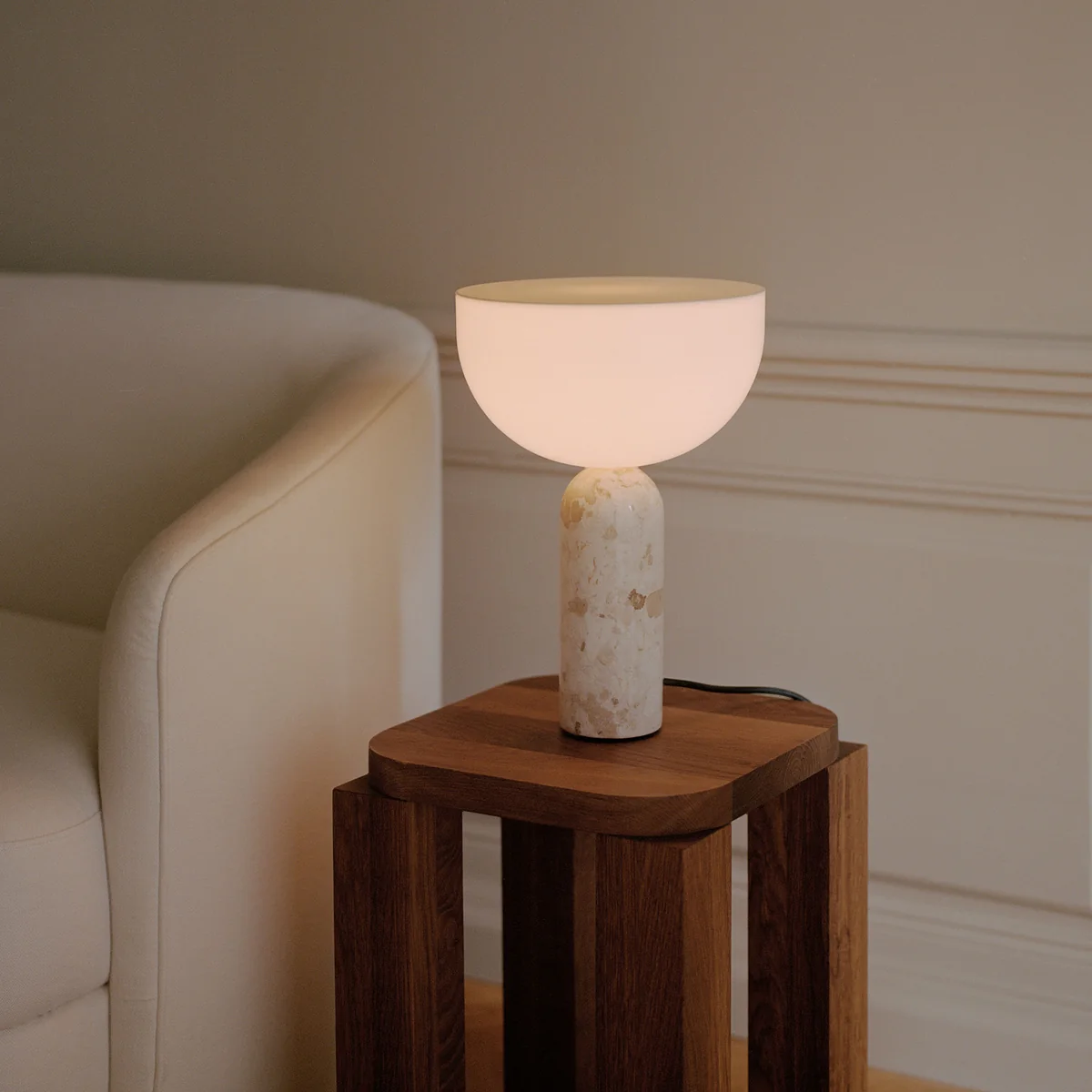 Die Kizu Tischleuchte S von New Works ist ein faszinierendes Designobjekt, das sich durch seine elegante Form und die harmonische Kombination aus Materialien auszeichnet. Diese kompakte Version der beliebten Kizu Serie verbindet skulpturale Ästhetik mit einer warmen, diffusen Beleuchtung und wird so zum stilvollen Highlight in jedem Raum.
