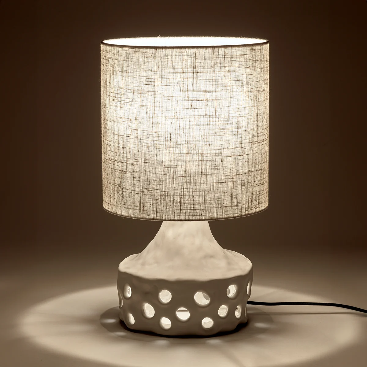 Die Oya Tischleuchte von Serax, entworfen von Sophie Casier, verbindet mediterrane Inspiration mit stilvollem Design. Der Fuß aus hochwertigem Steingut erinnert an die charakteristischen Formen eines charmanten Dorfes auf Santorin, während der runde Leinenschirm der Lampe eine elegante Note verleiht und für ein warmes, angenehmes Licht sorgt.