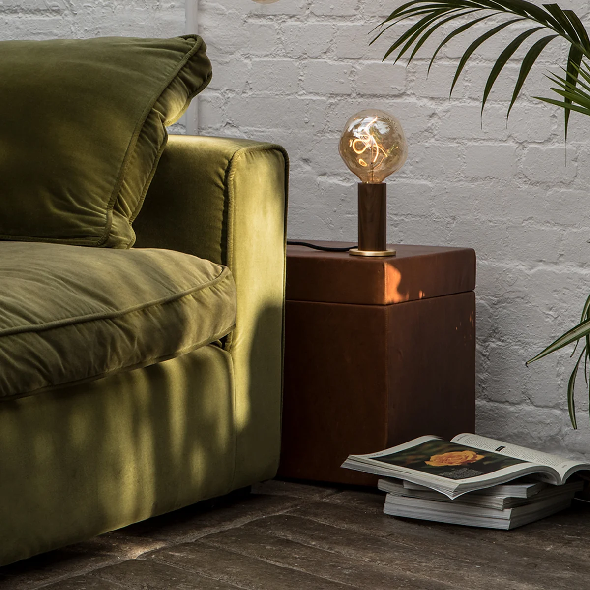 Die Knuckle Tischleuchte von Tala besteht aus Eiche oder Walnussholz und Messing.